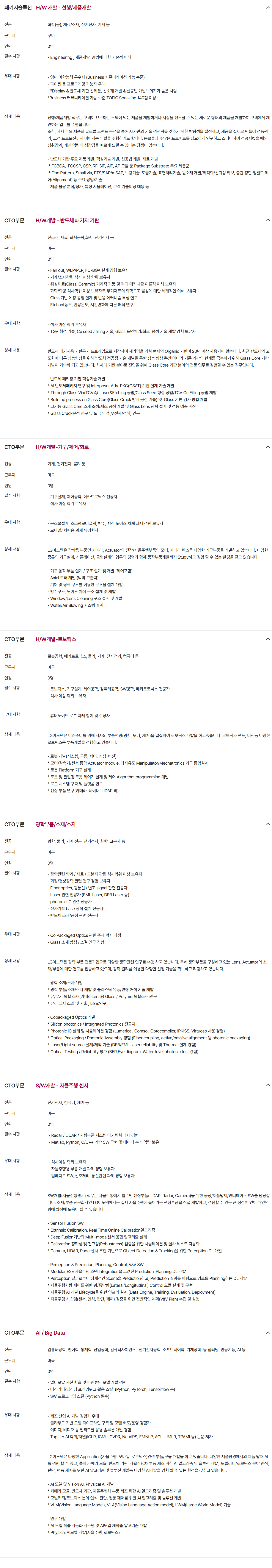 ¹ÝµµÃ¼ ÆÐŰÁö¿ë ±âÆÇÀº ¸®µåÇÁ·¹ÀÓÀ¸·Î ½ÃÀÛÇÏ¿© ¼¼¶ó¹ÍÀ» °ÅÃÄ ÇöÀçÀÇ Organic ±âÆÇÀÌ 20³â ÀÌ»ó »ç¿ëµÇ¾î ¿Ô½À´Ï´Ù. ÃÖ±Ù ¹ÝµµÃ¼ÀÇ °íµµÈ¿¡ µû¸¥ ¼º´ÉÇâ»óÀ» À§ÇØ ¹ÝµµÃ¼ Àü°øÁ¤ ±â¼ú °³¹ßÀ» ÅëÇÑ ¼º´É Çâ»ó »Ó¸¸ ¾Æ´Ï¶ó ±âÁ¸ ±âÆÇÀÇ ÇѰ踦 ±Øº¹Çϱâ À§ÇØ Glass Core ±âÆÇ °³¹ßÀÌ °¡¼ÓÈ µÇ°í ÀÖ½À´Ï´Ù. Â÷¼¼´ë ±âÆÇ ºÐ¾ß·Î ÁøÀÔÀ» À§ÇØ Glass Core ±âÆÇ ºÐ¾ßÀÇ Àü¹® ¾÷¹«¸¦ °æÇèÇÒ ¼ö ÀÖ´Â Á÷¹«ÀÔ´Ï´Ù.