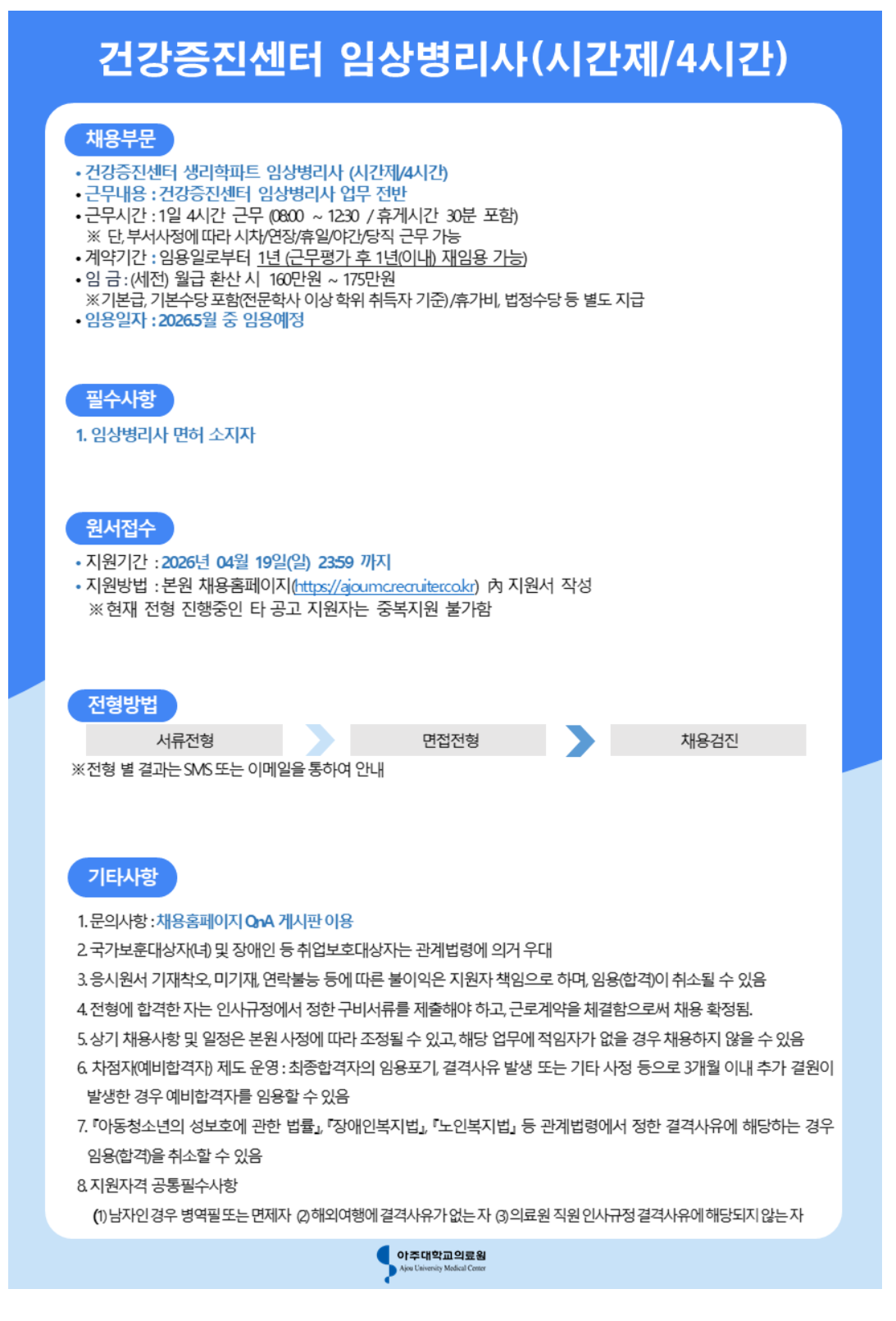 °Ç°­ÁõÁø¼¾ÅÍ »ý¸®ÇÐÆÄÆ® ÀÓ»óº´¸®»ç(½Ã°£Á¦/4½Ã°£)