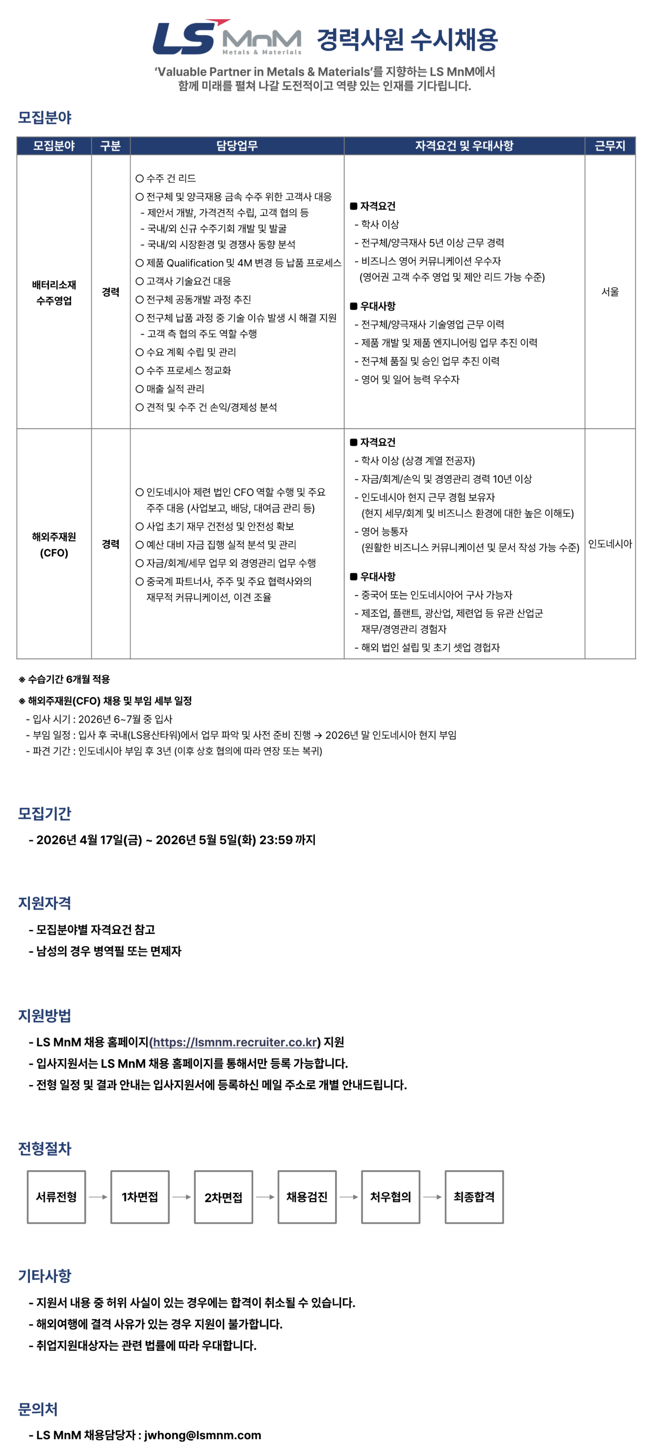 °æ·Â»ç¿ø ¼ö½Ãä¿ë [¹èÅ͸®¼ÒÀç¼öÁÖ¿µ¾÷, ÇØ¿ÜÁÖÀç¿ø(CFO)]