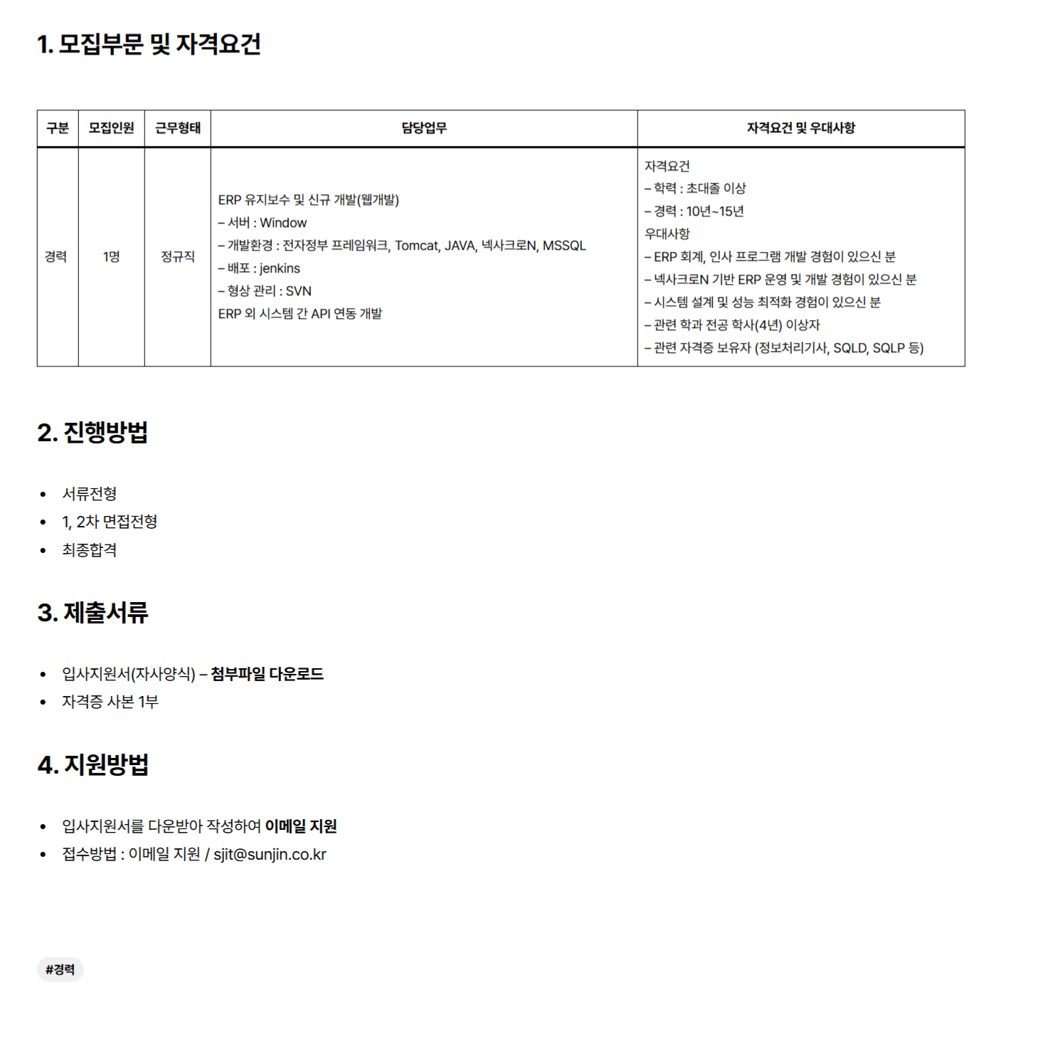 °æ·Â 1¸í Á¤±ÔÁ÷ ERP À¯Áöº¸¼ö ¹× ½Å±Ô °³¹ß(À¥°³¹ß)