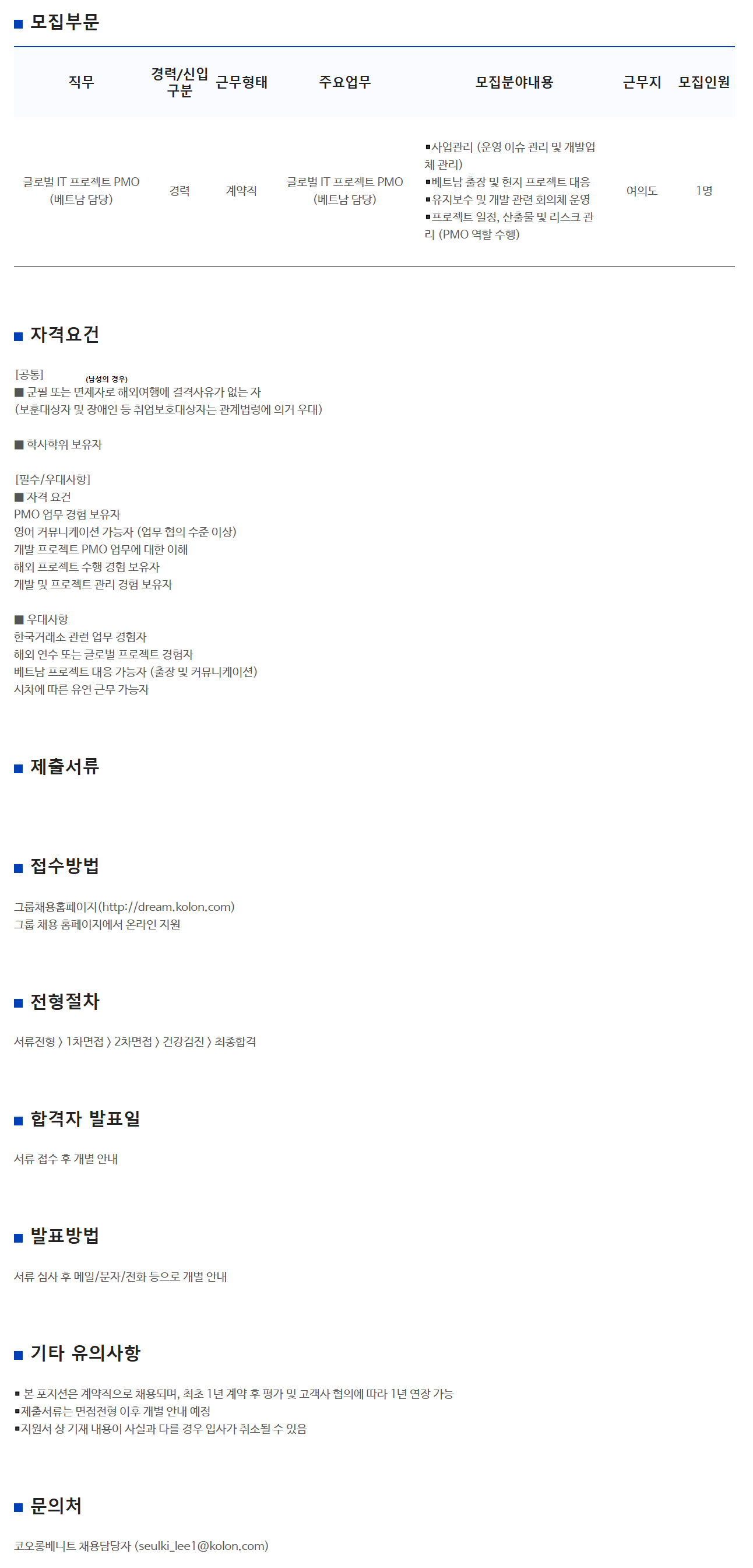 ±Û·Î¹ú IT ÇÁ·ÎÁ§Æ® PMO (º£Æ®³² ´ã´ç) °æ·Â °è¾àÁ÷ ±Û·Î¹ú IT ÇÁ·ÎÁ§Æ® PMO (º£Æ®³² ´ã´ç) ◾️»ç¾÷°ü¸® (¿î¿µ À̽´ °ü¸® ¹× °³¹ß¾÷ü °ü¸®)