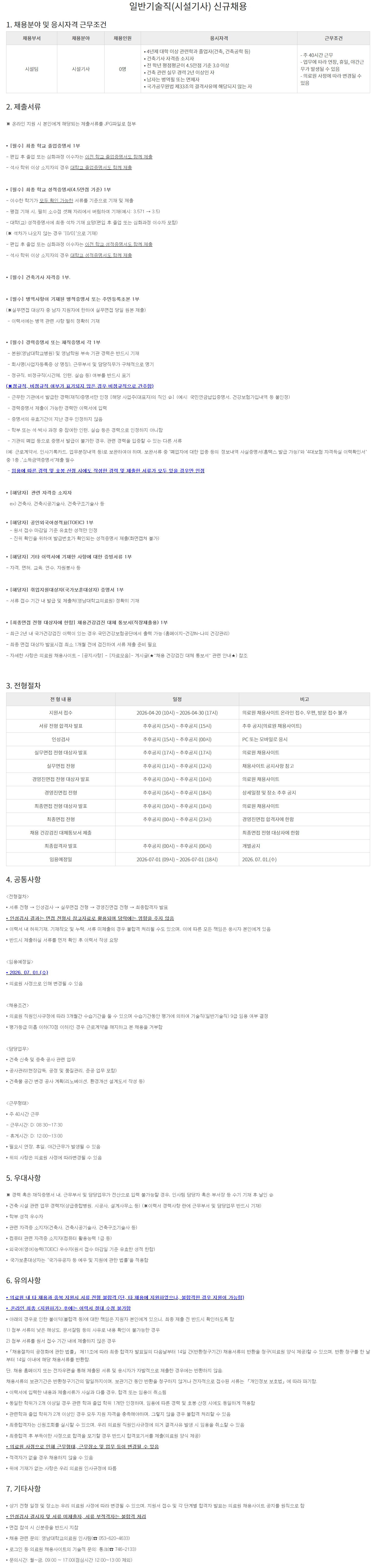 ½Ã¼³ÆÀ ½Ã¼³±â»ç 0¸í • 4³âÁ¦ ´ëÇÐ ÀÌ»ó °ü·ÃÇаú Á¹¾÷ÀÚ(°ÇÃà, °ÇÃà°øÇÐ µî)