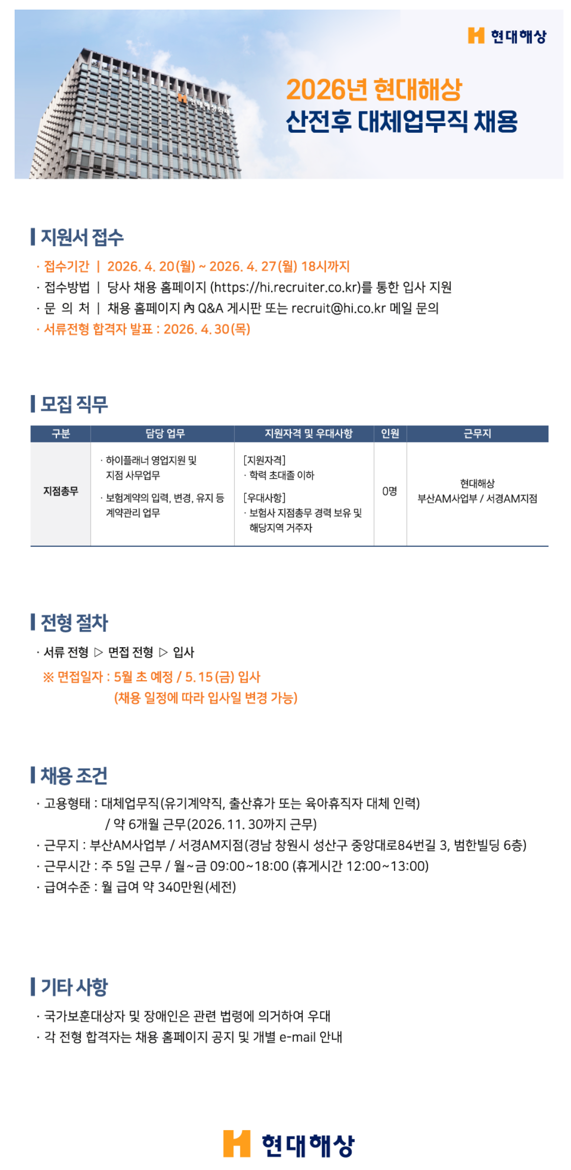 2026 Çö´ëÇØ»ó ´ëü¾÷¹«Á÷ ä¿ë - â¿ø
