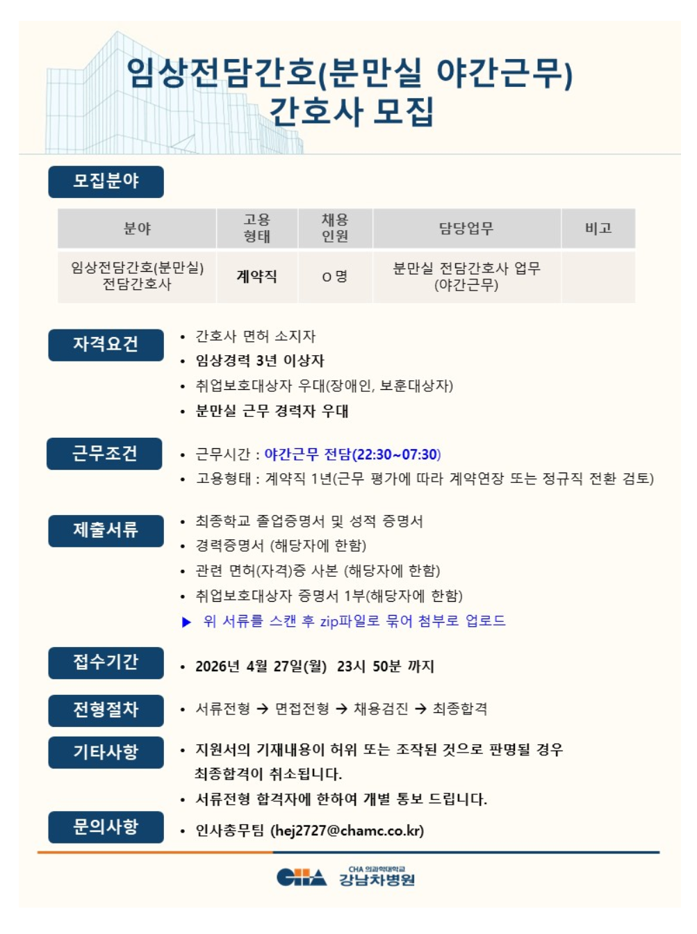 [°³²Â÷º´¿ø] °£È£±¹ ÀÓ»óÀü´ã°£È£(ºÐ¸¸½Ç ¾ß°£Àü´ã) °£È£»ç ¸ðÁý