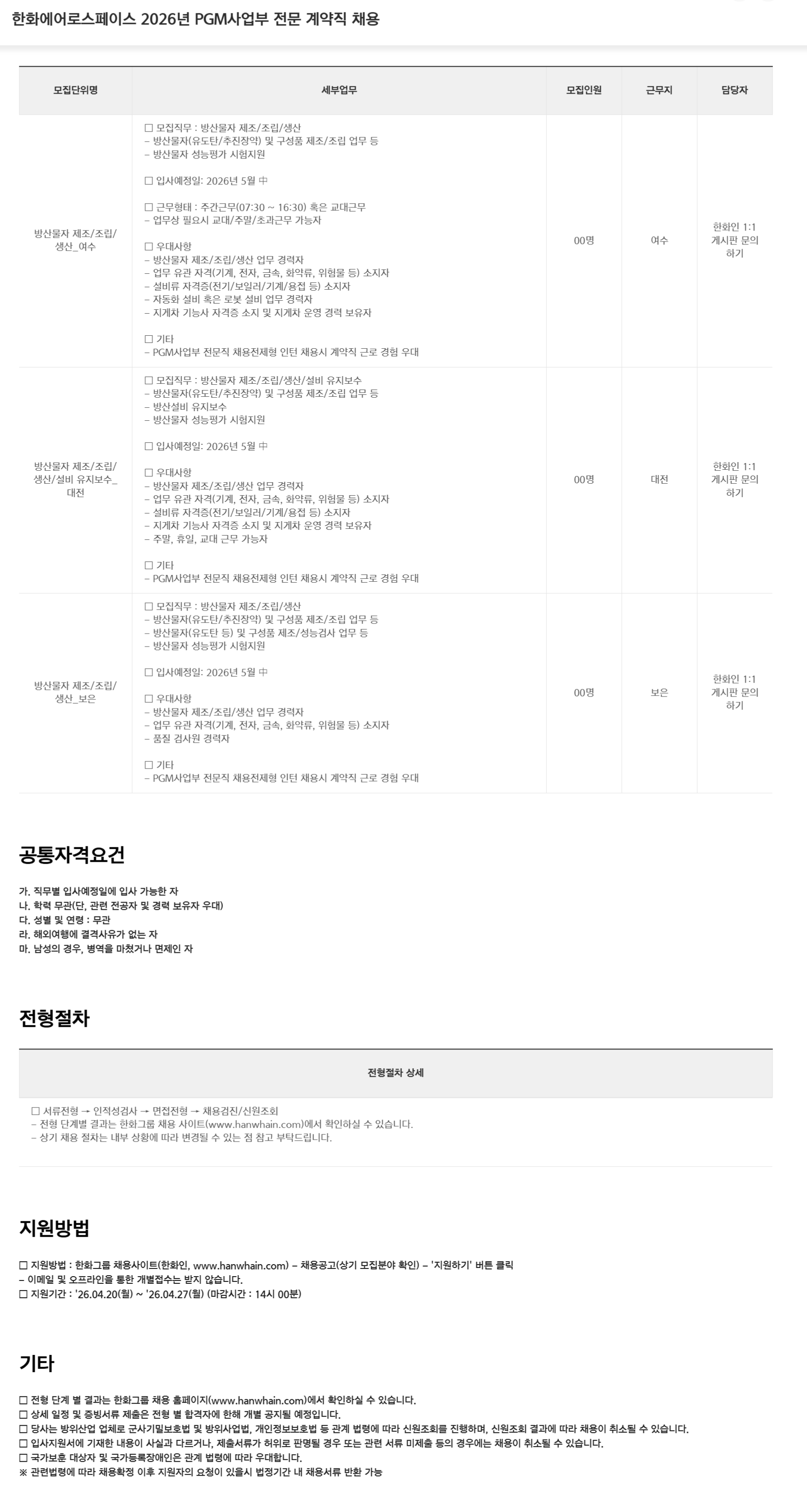 ÇÑÈ¿¡¾î·Î½ºÆäÀ̽º 2026³â PGM»ç¾÷ºÎ Àü¹® °è¾àÁ÷ ä¿ë