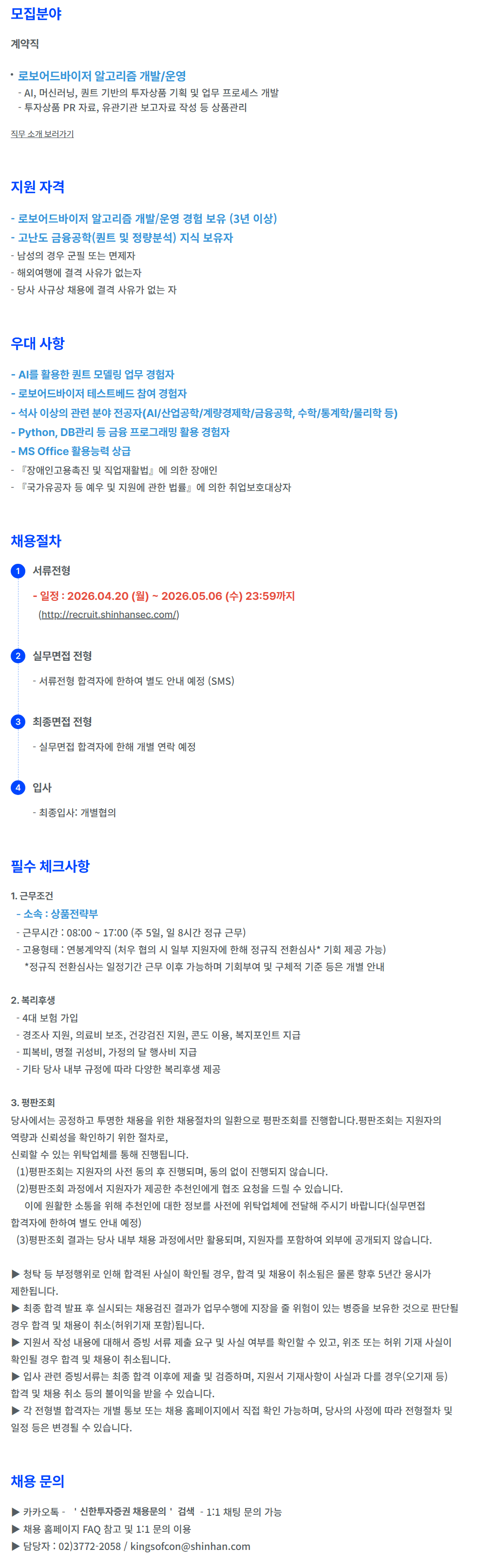 - ¼®»ç ÀÌ»óÀÇ °ü·Ã ºÐ¾ß Àü°øÀÚ(AI/»ê¾÷°øÇÐ/°è·®°æÁ¦ÇÐ/±ÝÀ¶°øÇÐ, ¼öÇÐ/Åë°èÇÐ/¹°¸®ÇÐ µî)
