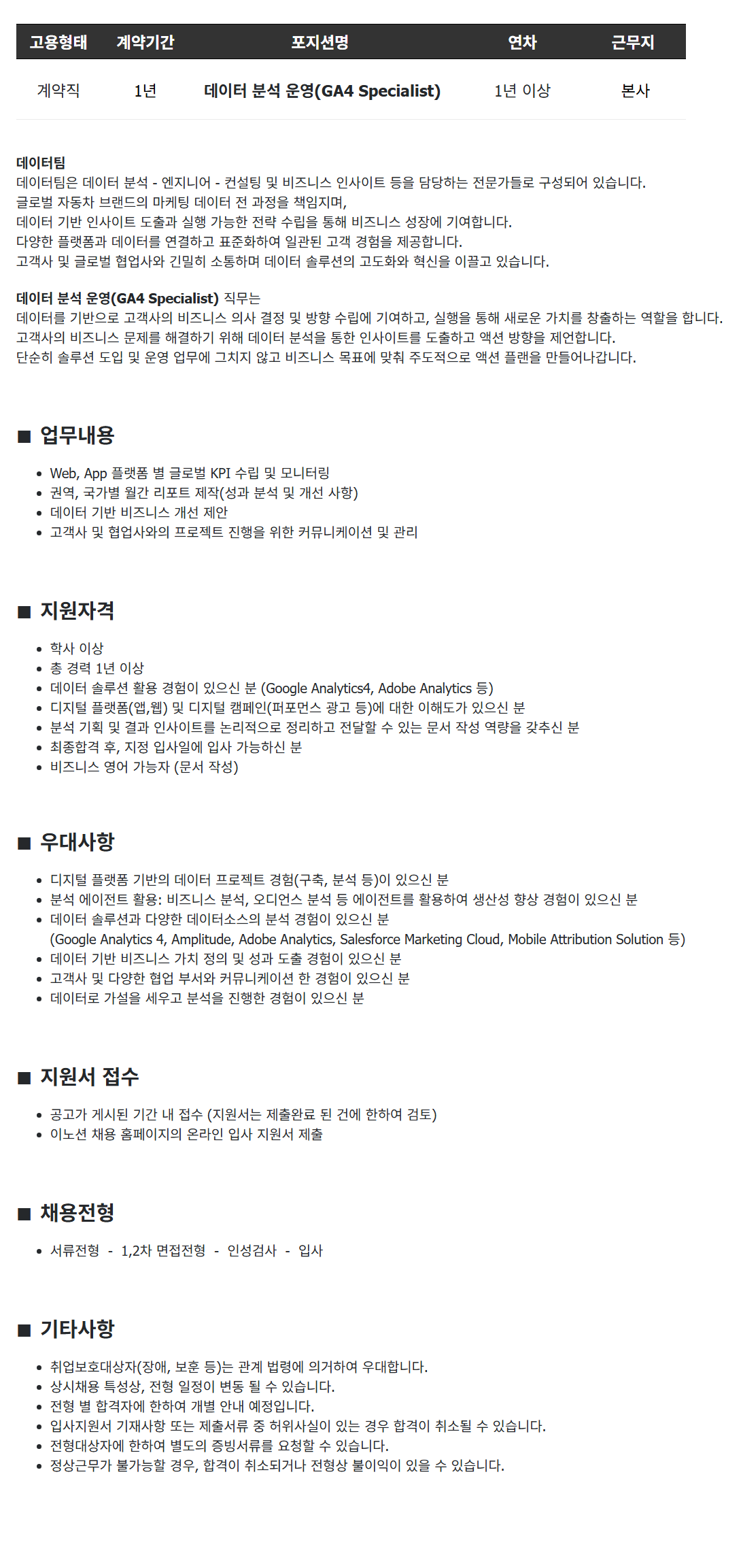 µ¥ÀÌÅÍ ºÐ¼® ¿î¿µ(GA4 Specialist)