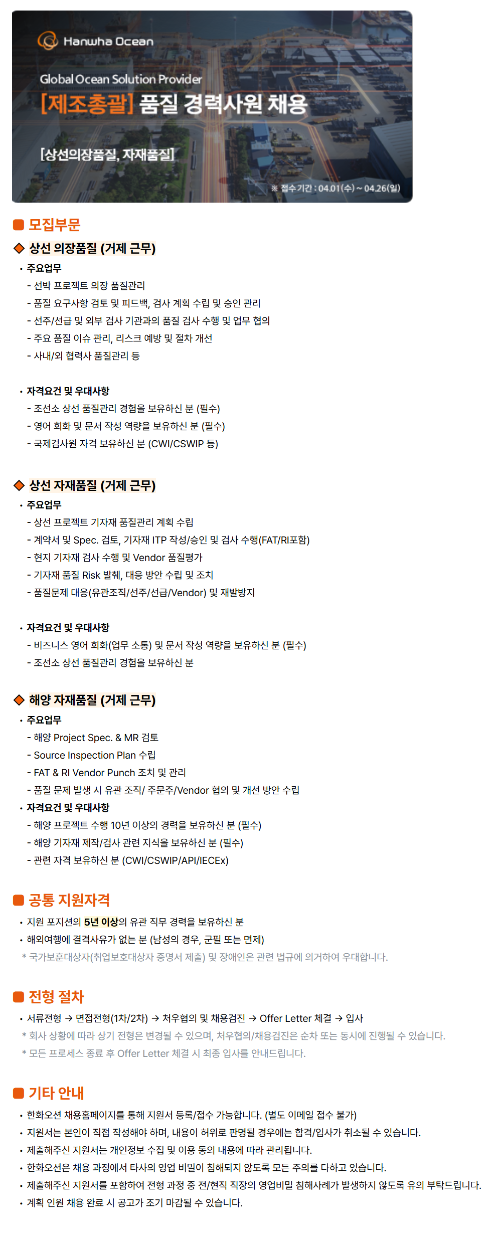 - ÇØ¾ç ÇÁ·ÎÁ§Æ® ¼öÇà 10³â ÀÌ»óÀÇ °æ·ÂÀ» º¸À¯ÇϽŠºÐ (Çʼö)
