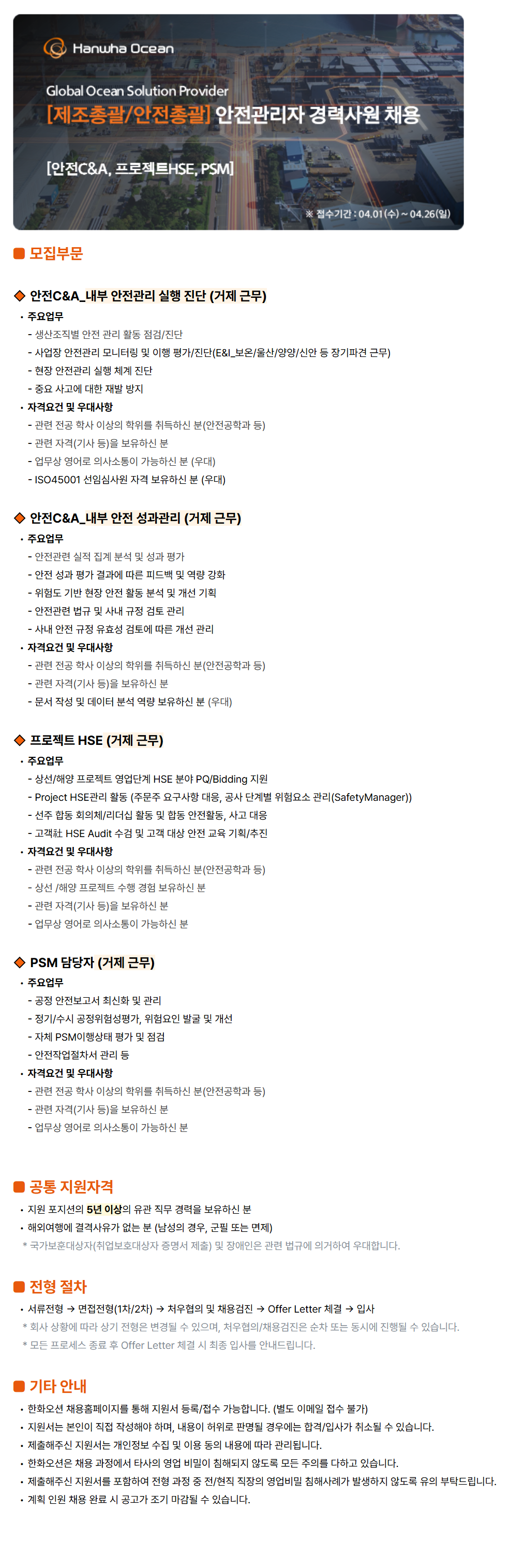 - »ó¼±/ÇØ¾ç ÇÁ·ÎÁ§Æ® ¿µ¾÷´Ü°è HSE ºÐ¾ß PQ/Bidding Áö¿ø