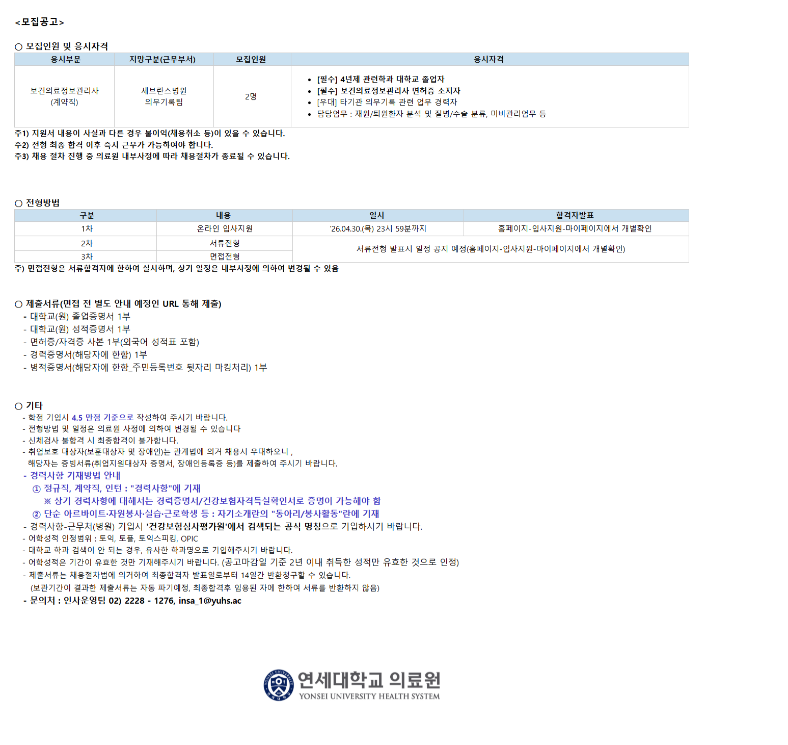 [ÀϹÝ-½ÅÃÌ] º¸°ÇÀÇ·áÁ¤º¸°ü¸®»ç(°è¾àÁ÷) ¼¼ºê)Àǹ«±â·ÏÆÀ 26.04 ¸ðÁý