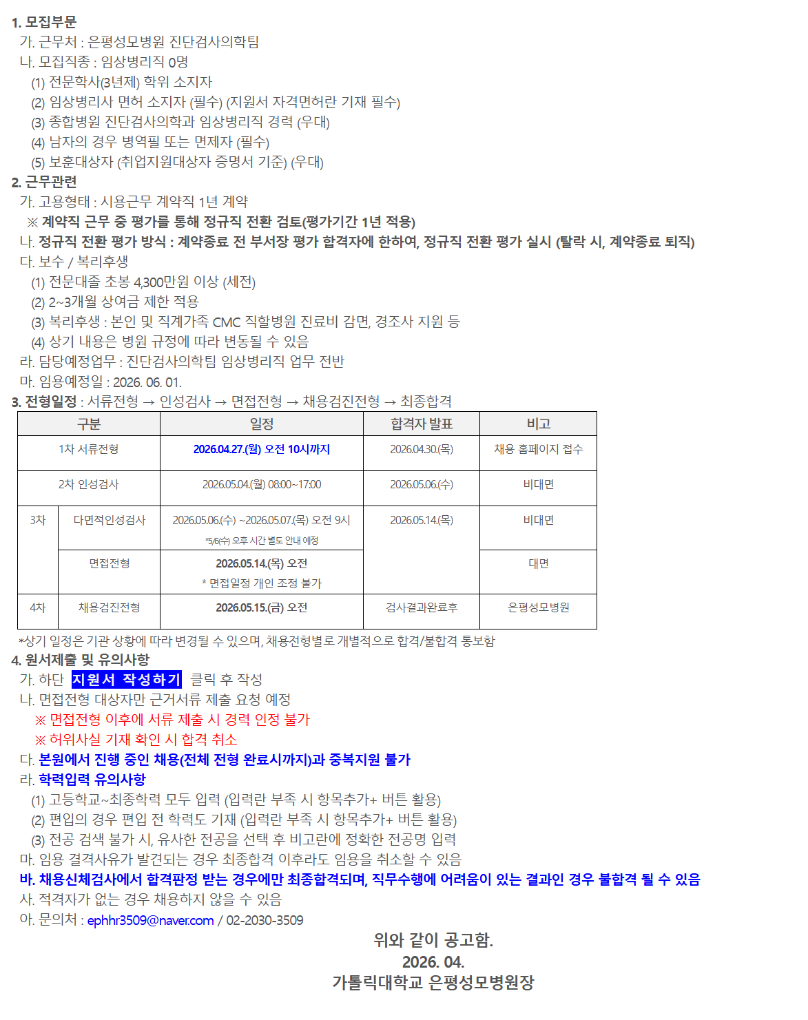 °¡. ±Ù¹«Ã³ : ÀºÆò¼º¸ðº´¿ø Áø´Ü°Ë»çÀÇÇÐÆÀ