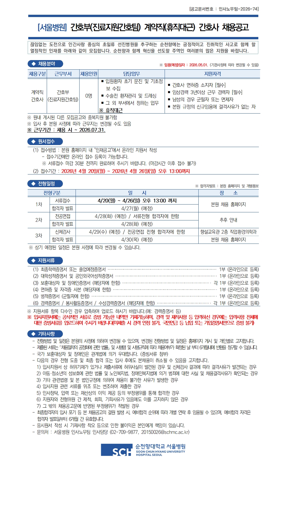 °£È£ºÎ(Áø·áÁö¿ø°£È£ÆÀ) °è¾àÁ÷(ÈÞÁ÷´ë±Ù) °£È£»ç ä¿ë°ø°í