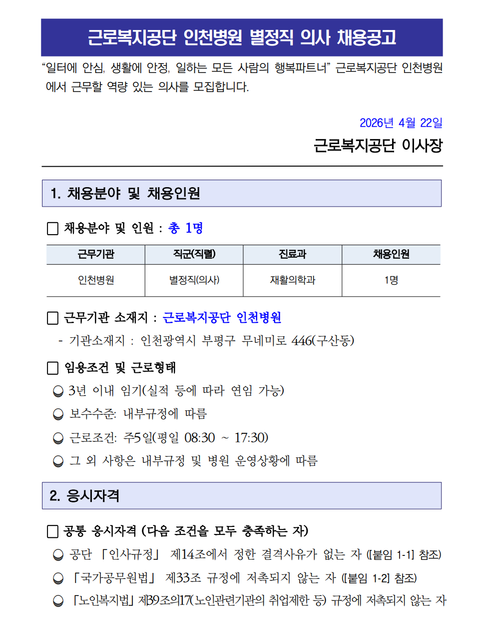 [ÀÎõº´¿ø] º°Á¤Á÷(ÀÇ»ç) ÀçȰÀÇÇаú ä¿ë°ø°í
