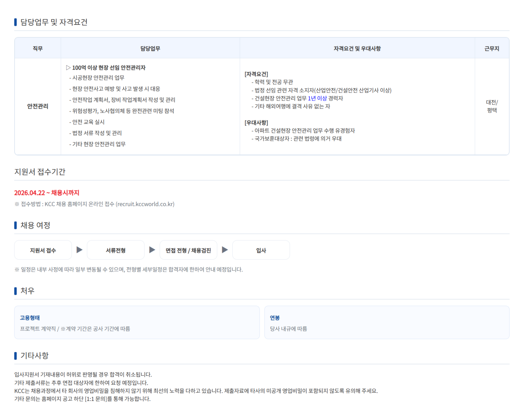 [KCC] ½Ã°øÇöÀå ¾ÈÀü°ü¸®ÀÚ ÀÎÀç ä¿ë(´ëÀü/ÆòÅÃ)