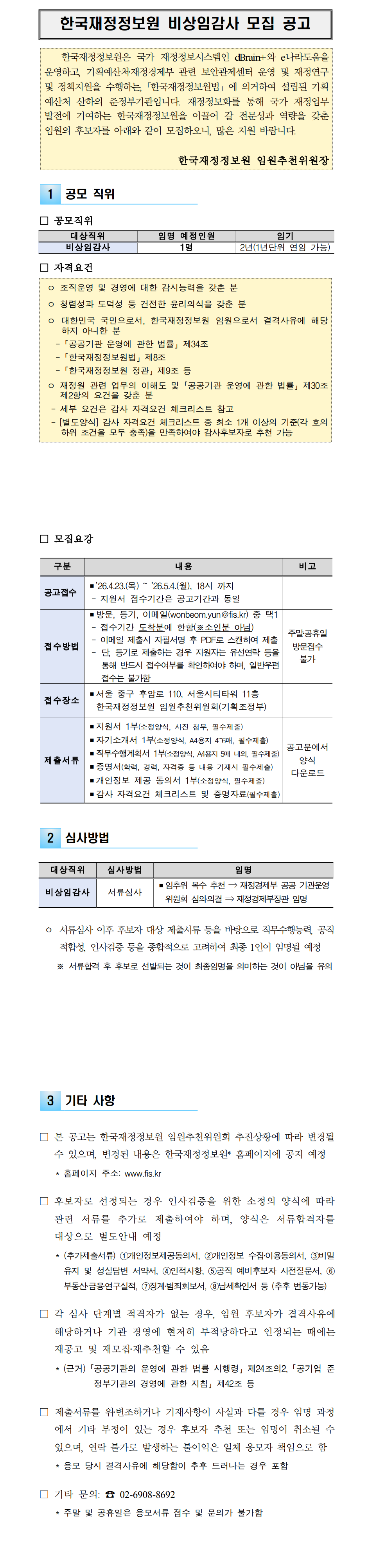 Çѱ¹ÀçÁ¤Á¤º¸¿ø ºñ»óÀÓ°¨»ç ¸ðÁý °ø°í