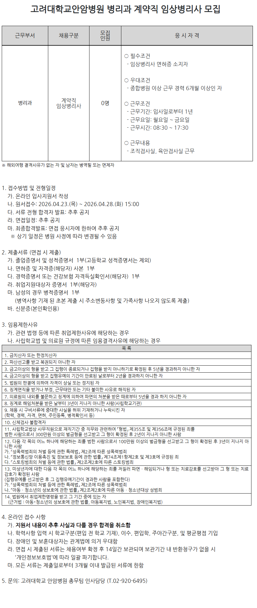 °í·Á´ëÇб³¾È¾Ïº´¿ø º´¸®°ú °è¾àÁ÷ ÀÓ»óº´¸®»ç ¸ðÁý