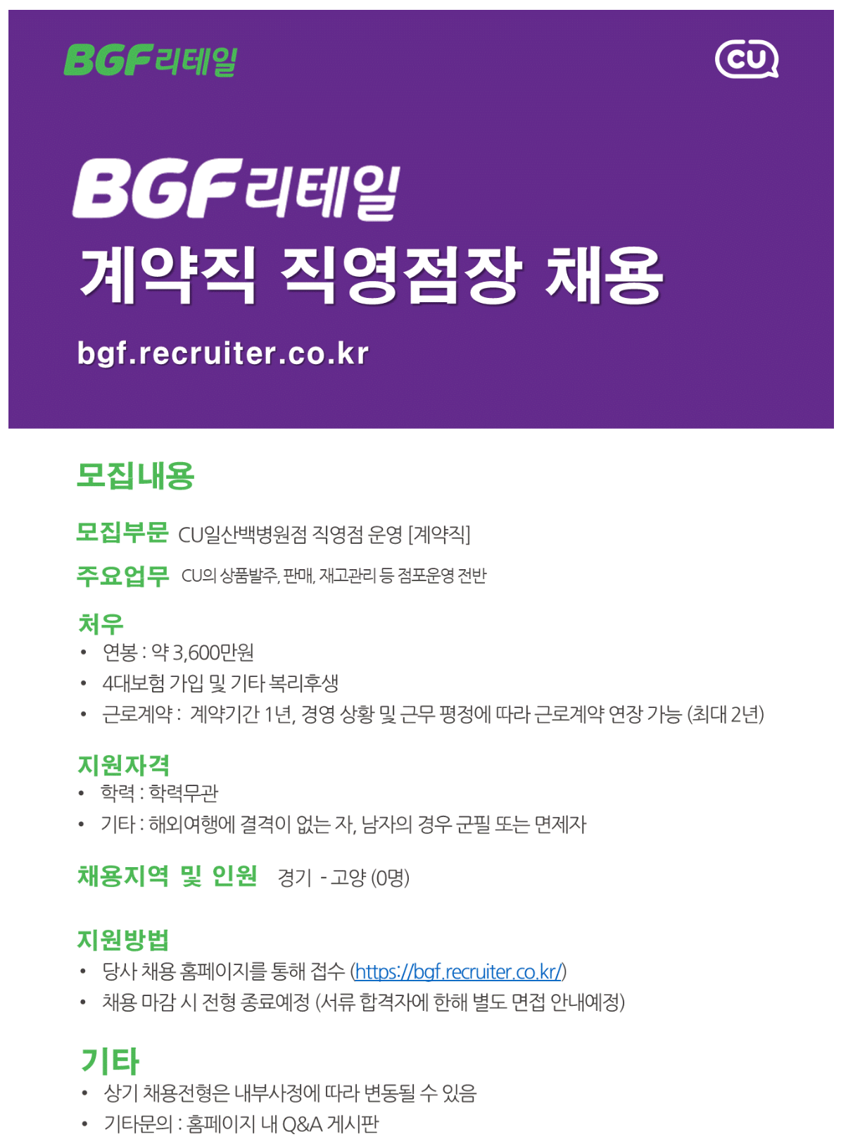 [BGF¸®Å×ÀÏ] 2026³â °è¾àÁ÷ Á÷¿µÁ¡Àå ä¿ë - ÀÏ»ê¹éº´¿øÁ¡