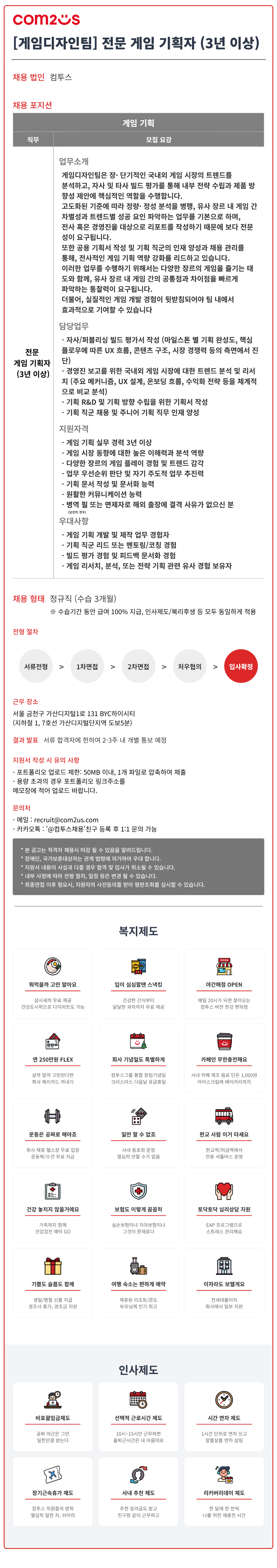 [°ÔÀÓµðÀÚÀÎÆÀ] Àü¹® °ÔÀÓ ±âȹÀÚ (3³â ÀÌ»ó)