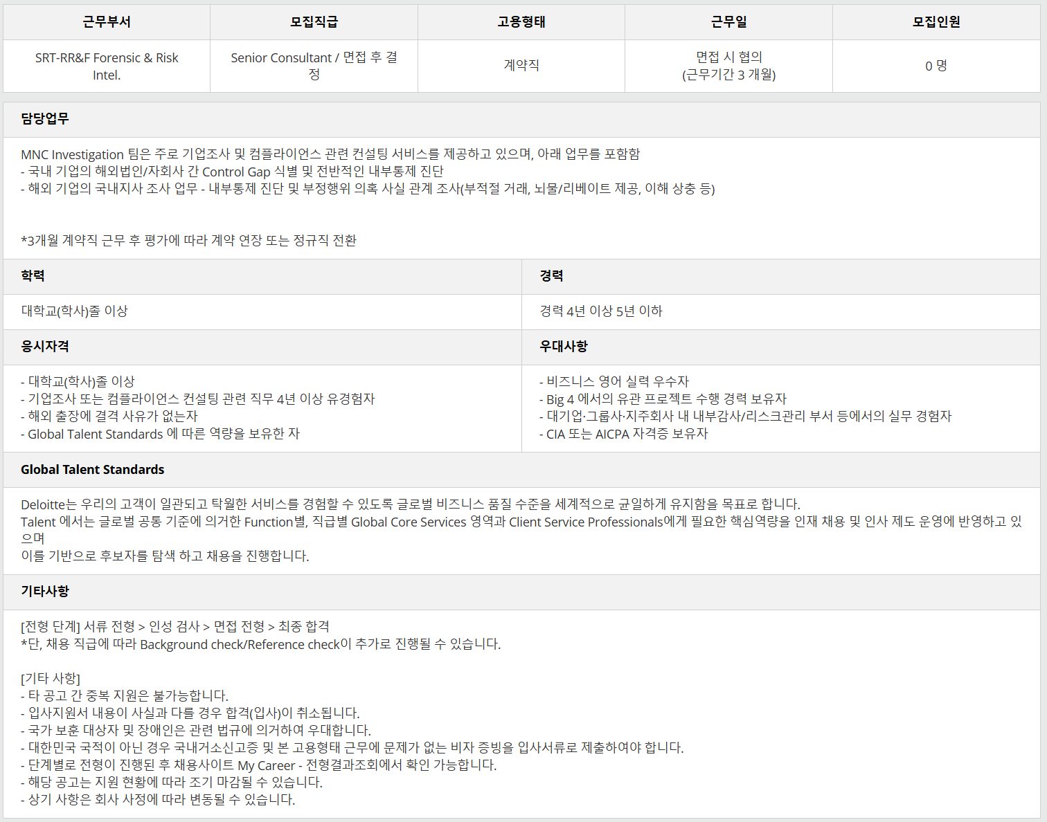 SRT-RR&F Forensic & Risk Intel. Senior Consultant / ¸éÁ¢ ÈÄ °áÁ¤ °è¾àÁ÷ ¸éÁ¢ ½Ã ÇùÀÇ