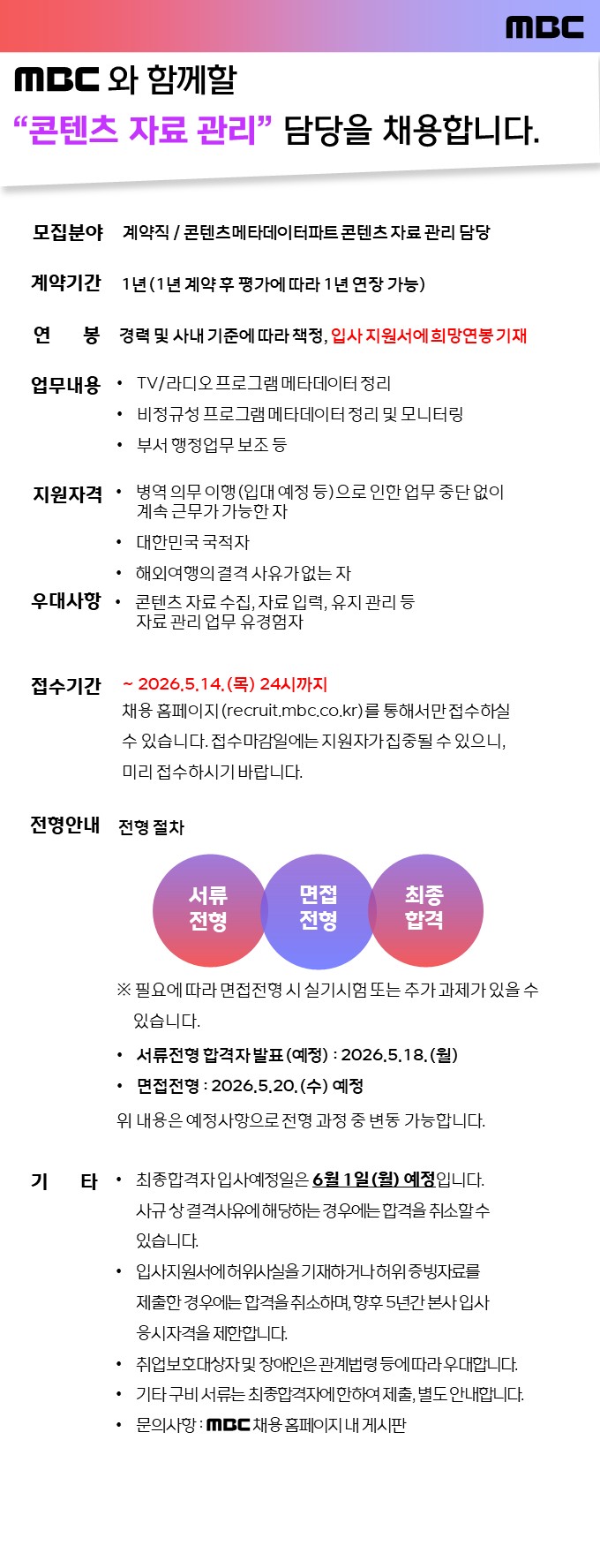 MBC IT¼Ö·ç¼ÇÆÀ ÄÜÅÙÃ÷¸ÞŸµ¥ÀÌÅÍÆÄÆ® ÄÜÅÙÃ÷ ÀÚ·á °ü¸® ´ã´ç ¸ðÁý