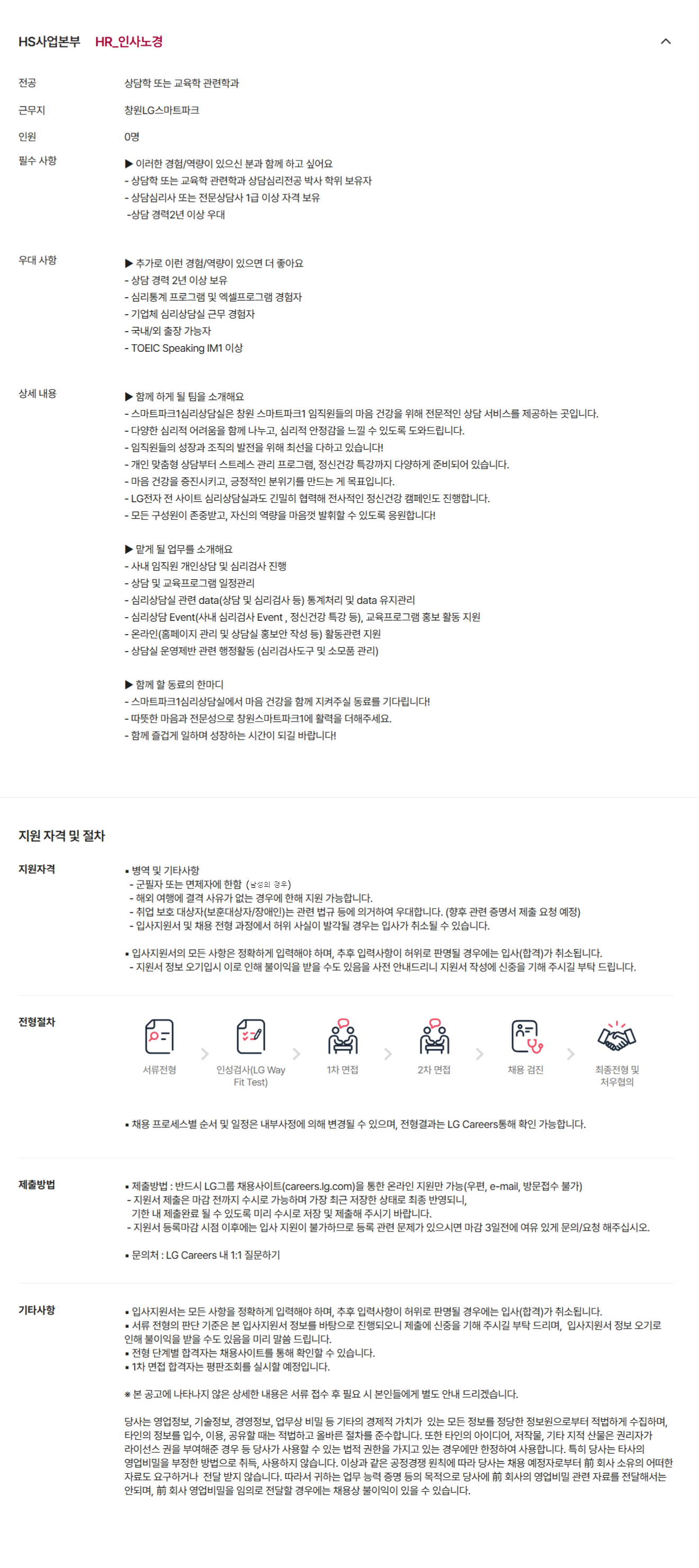 [HSº»ºÎ] LGÀüÀÚ Ã¢¿ø LG½º¸¶Æ®ÆÄÅ© ½É¸®»ó´ã»ç ä¿ë(°è¾àÁ÷)