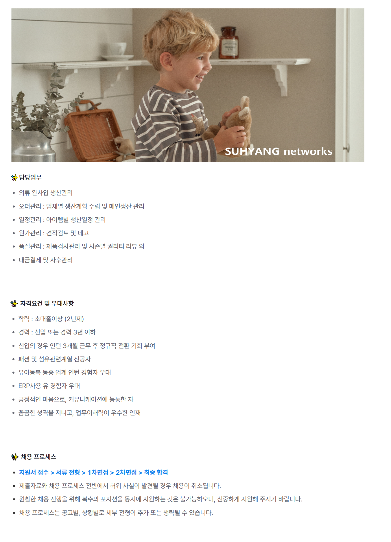 ✨ ÀÚ°Ý¿ä°Ç ¹× ¿ì´ë»çÇ× Çз : ÃÊ´ëÁ¹ÀÌ»ó (2³âÁ¦) °æ·Â : ½ÅÀÔ ¶Ç´Â °æ·Â 3³â ÀÌÇÏ ½ÅÀÔÀÇ °æ¿ì ÀÎÅÏ 3°³¿ù ±Ù¹« ÈÄ Á¤±ÔÁ÷ Àüȯ ±âȸ ºÎ¿© ÆÐ¼Ç ¹× ¼¶À¯°ü·Ã°è¿­ Àü°øÀÚ À¯¾Æµ¿º¹ µ¿Á¾ ¾÷°è ÀÎÅÏ °æÇèÀÚ ¿ì´ë ERP»ç¿ë À¯ °æÇèÀÚ ¿ì´ë ±àÁ¤ÀûÀÎ ¸¶À½À¸·Î, Ä¿¹Â´ÏÄÉÀ̼ǿ¡ ´ÉÅëÇÑ ÀÚ ²Ä²ÄÇÑ ¼º°ÝÀ» Áö´Ï°í, ¾÷¹«ÀÌÇØ·ÂÀÌ ¿ì¼öÇÑ ÀÎÀç