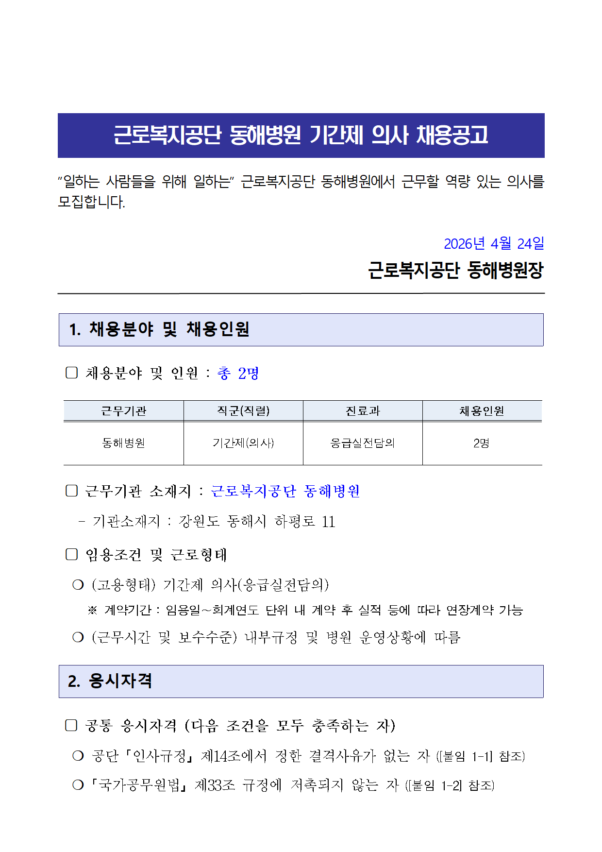 [µ¿Çغ´¿ø] ±â°£Á¦ ÀÇ»ç(ÀÀ±Þ½ÇÀü´ãÀÇ) ½Å±Ô ä¿ë