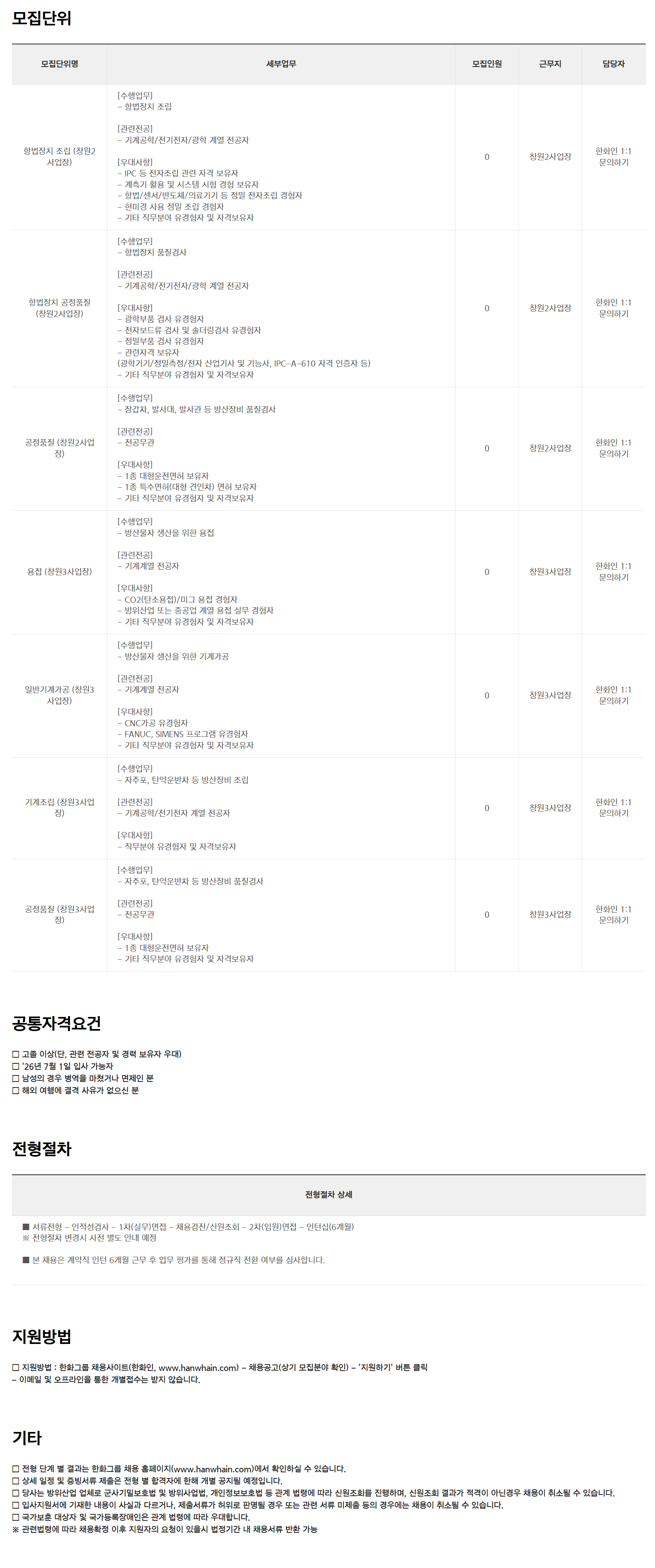 ¡à Áö¿ø¹æ¹ý : ÇÑȱ׷ì ä¿ë»çÀÌÆ®(ÇÑÈÀÎ, www.hanwhain.com) - ä¿ë°ø°í(»ó±â ¸ðÁýºÐ¾ß È®ÀÎ) - 'Áö¿øÇϱâ' ¹öư Ŭ¸¯