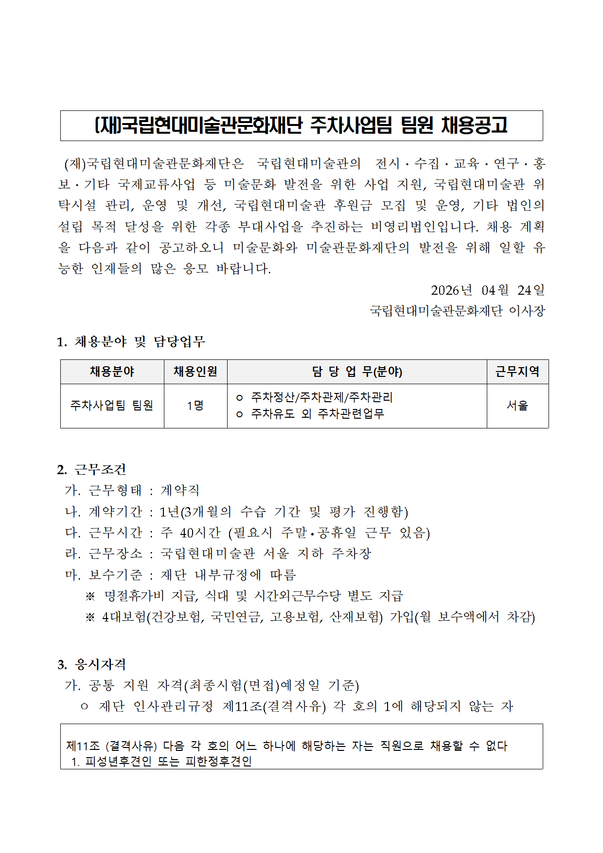 (Àç)±¹¸³Çö´ë¹Ì¼ú°ü¹®ÈÀç´Ü ÁÖÂ÷»ç¾÷ÆÀ ÆÀ¿ø ä¿ë°ø°í