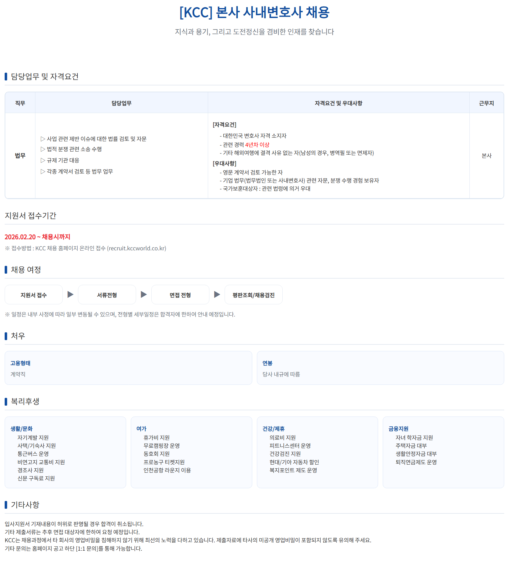 ¡Ø Á¢¼ö¹æ¹ý : KCC ä¿ë ȨÆäÀÌÁö ¿Â¶óÀÎ Á¢¼ö (recruit.kccworld.co.kr)