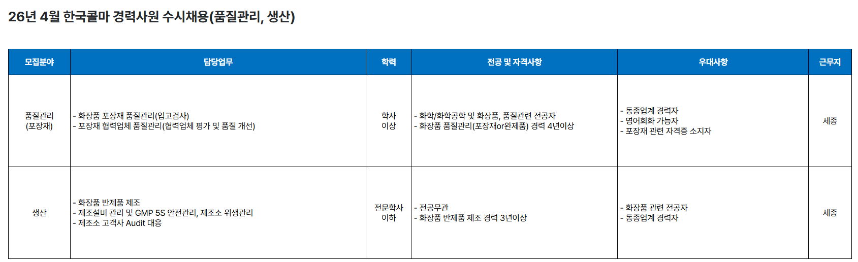 26³â 4¿ù Çѱ¹Äݸ¶ °æ·Â»ç¿ø ¼ö½Ãä¿ë(ǰÁú°ü¸®, »ý»ê)