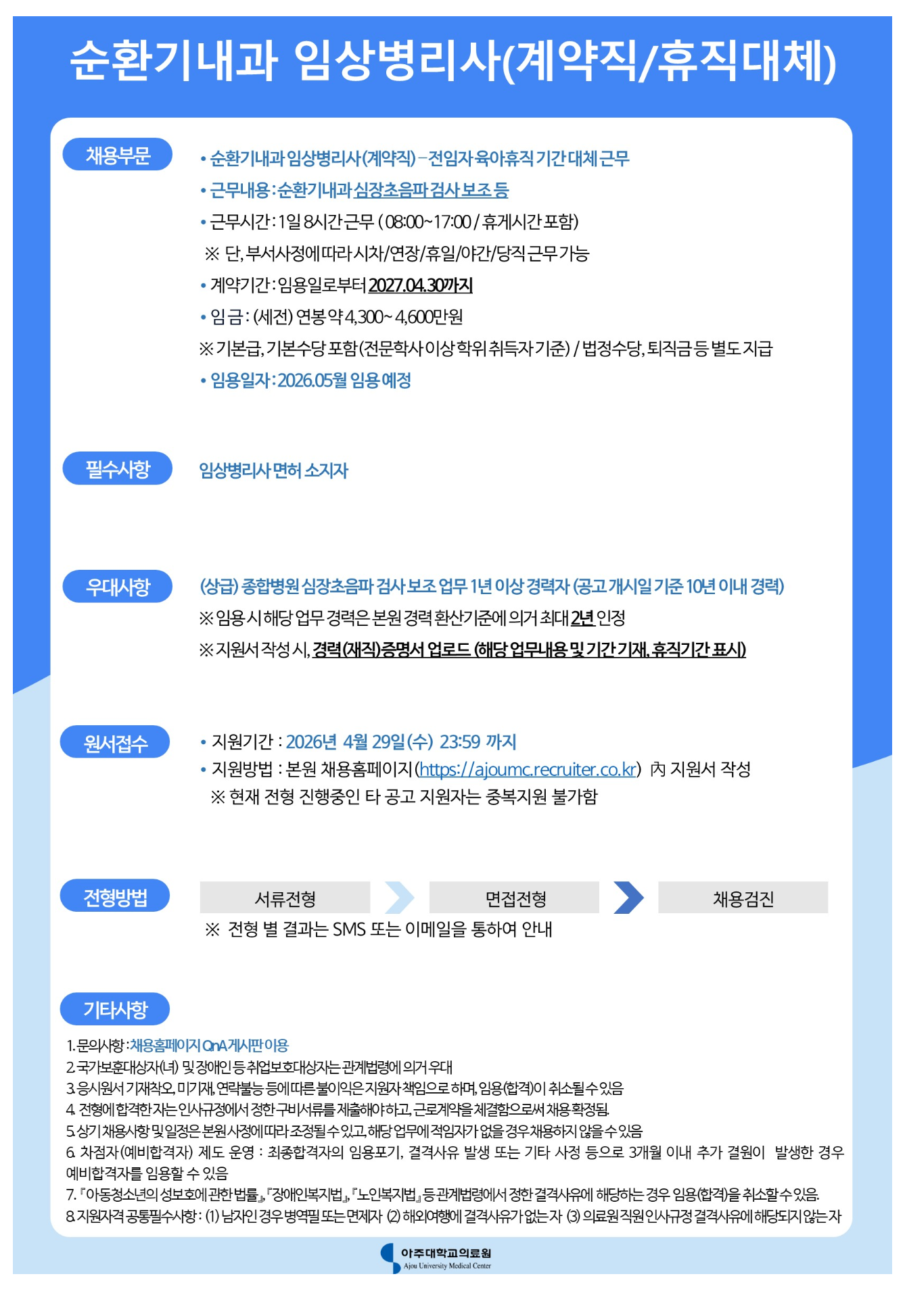 ¼øÈ¯±â³»°ú ÀÓ»óº´¸®»ç(°è¾àÁ÷/ÈÞÁ÷´ëü)