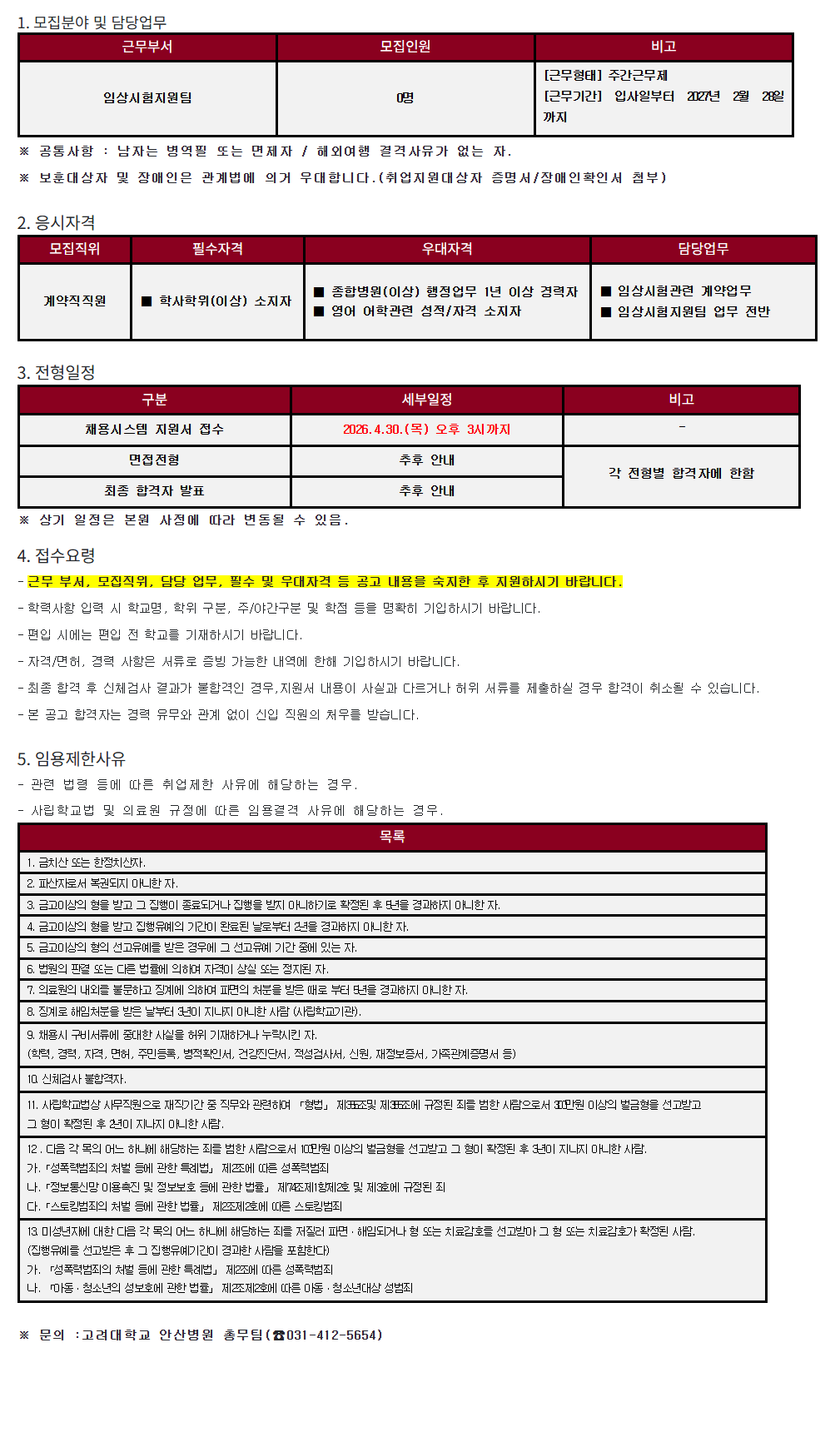 [¾È»êº´¿ø26-35] ÀÓ»ó½ÃÇèÁö¿øÆÀ °è¾àÁ÷Á÷¿ø ¸ðÁý