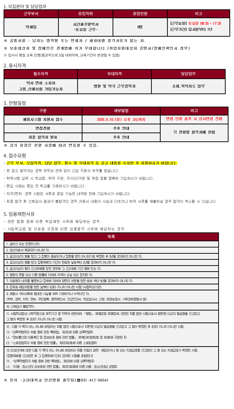 - ±Ù¹« ºÎ¼, ¸ðÁýÁ÷À§, ´ã´ç ¾÷¹«, Çʼö ¹× ¿ì´ëÀÚ°Ý µî °ø°í ³»¿ëÀ» ¼÷ÁöÇÑ ÈÄ Áö¿øÇϽñ⠹ٶø´Ï´Ù.