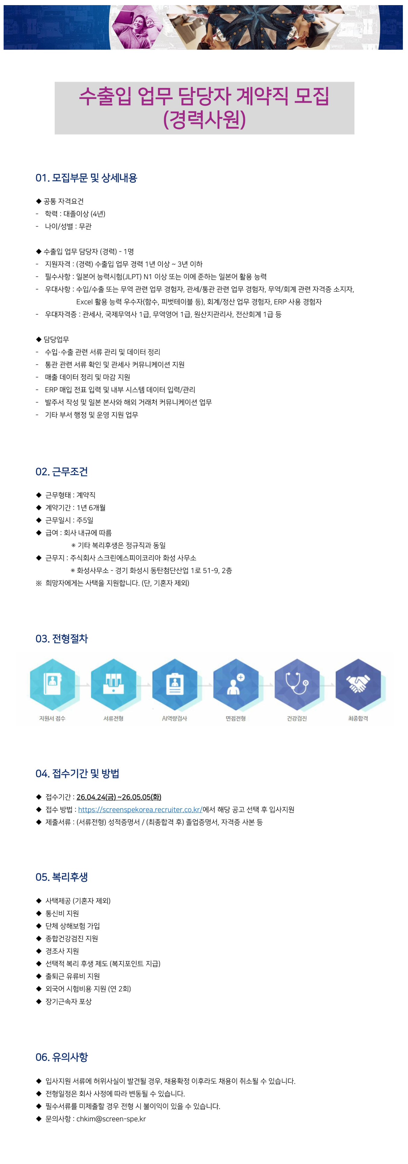 ¼öÃâÀÔ ¾÷¹« ´ã´çÀÚ °è¾àÁ÷ ¸ðÁý (°æ·Â»ç¿ø)