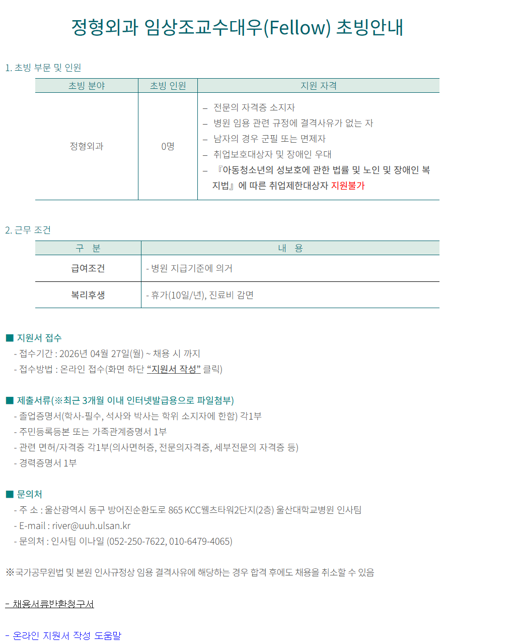 Á¤Çü¿Ü°ú ÀÓ»óÁ¶±³¼ö´ë¿ì(Fellow) Ãʺù¾È³»