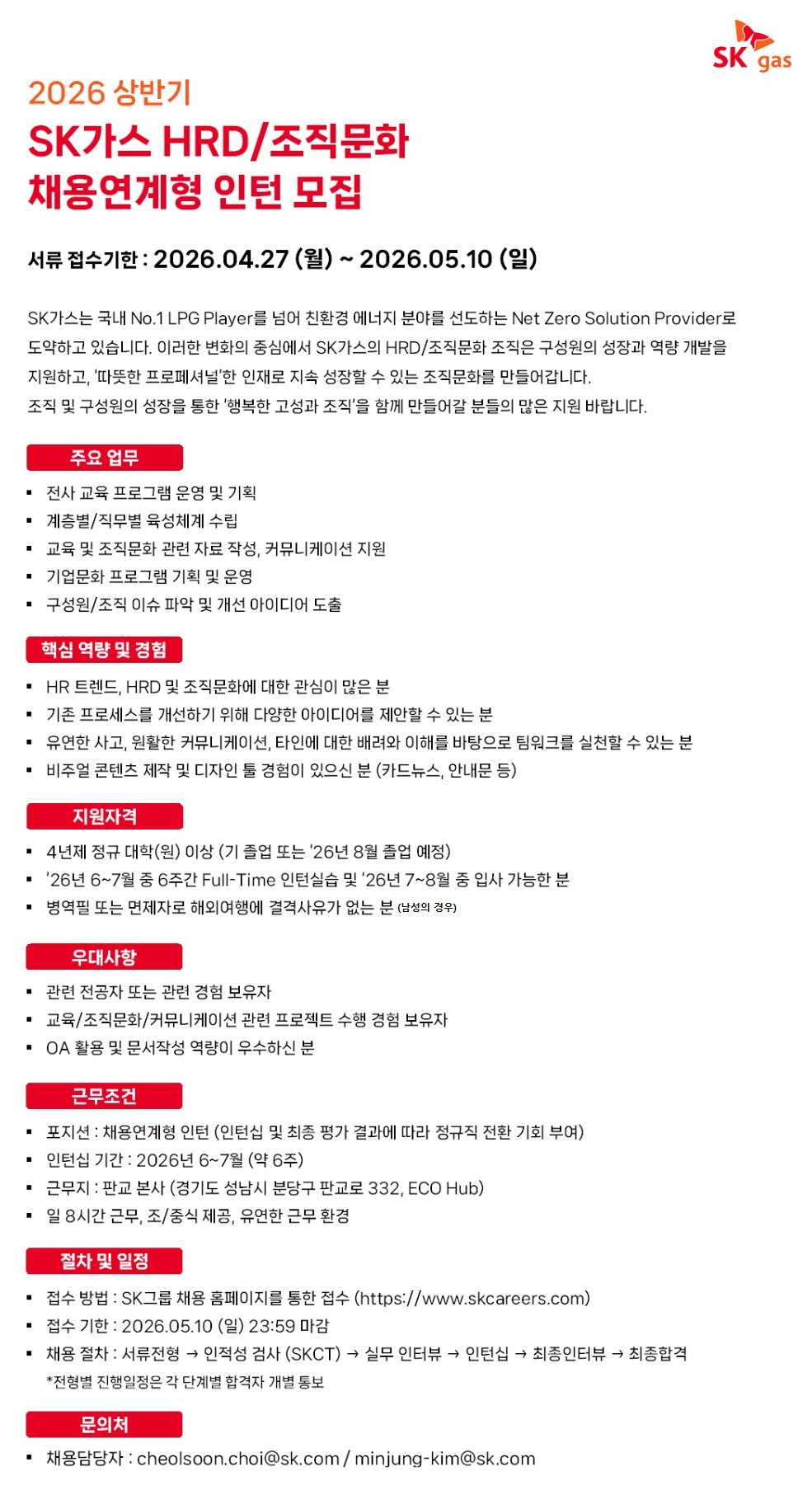 2026³â »ó¹Ý±â SK°¡½º HRD/Á¶Á÷¹®È ä¿ë¿¬°èÇü ÀÎÅÏ ¸ðÁý