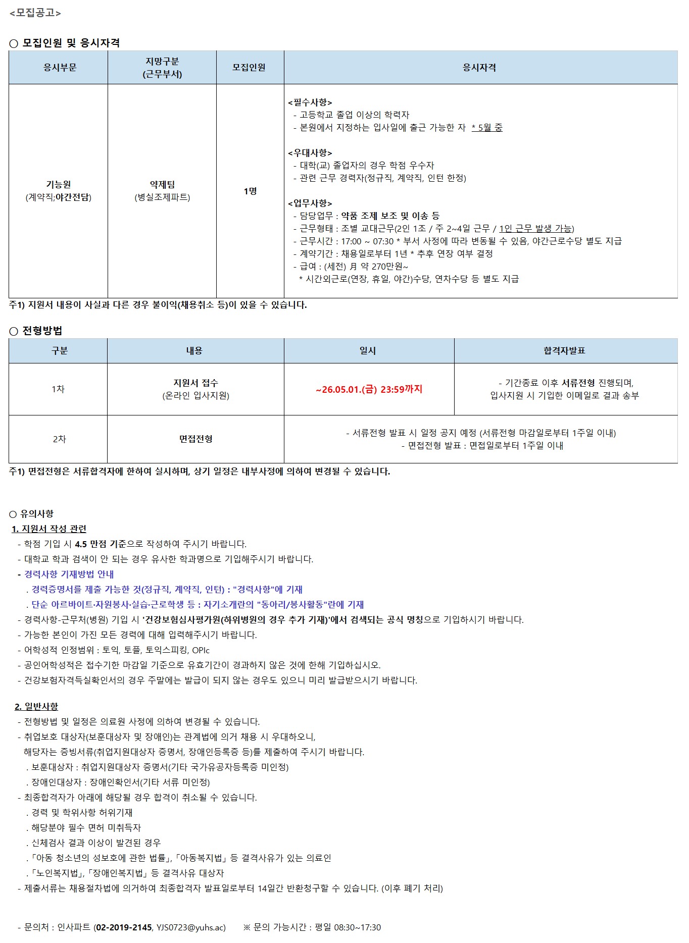 - ±Ù¹«ÇüÅ : Á¶º° ±³´ë±Ù¹«(2ÀÎ 1Á¶ / ÁÖ 2~4ÀÏ ±Ù¹« / 1ÀÎ ±Ù¹« ¹ß»ý °¡´É)