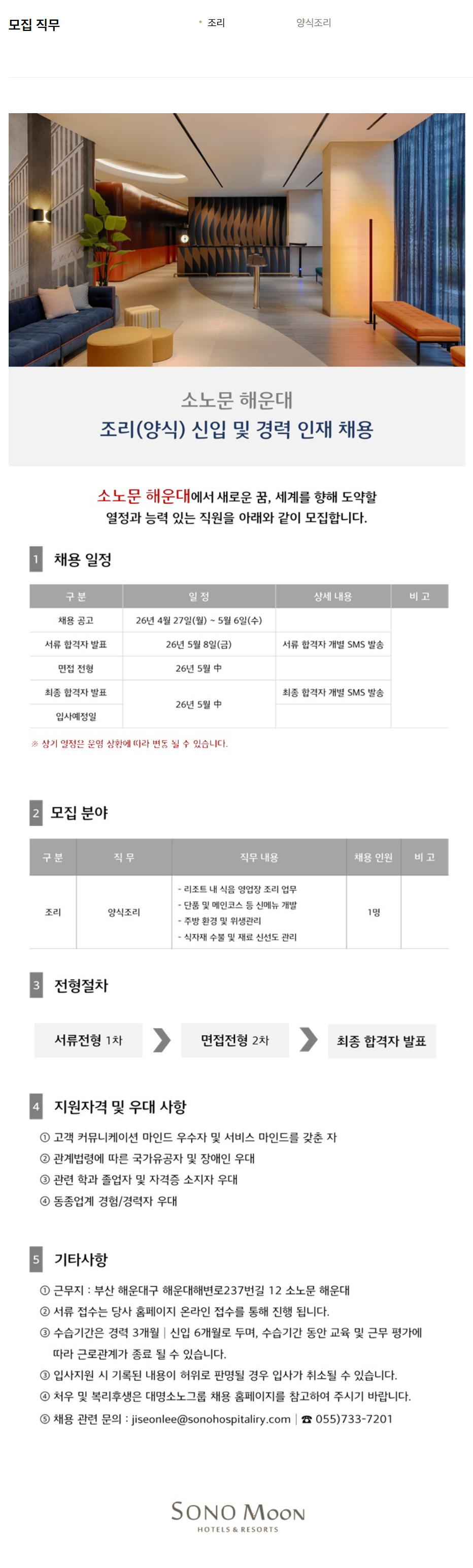 [¼Ò³ë¹® ÇØ¿î´ë] Á¶¸®(¾ç½Ä) ½ÅÀÔ/°æ·Â ÀÎÀç ä¿ë