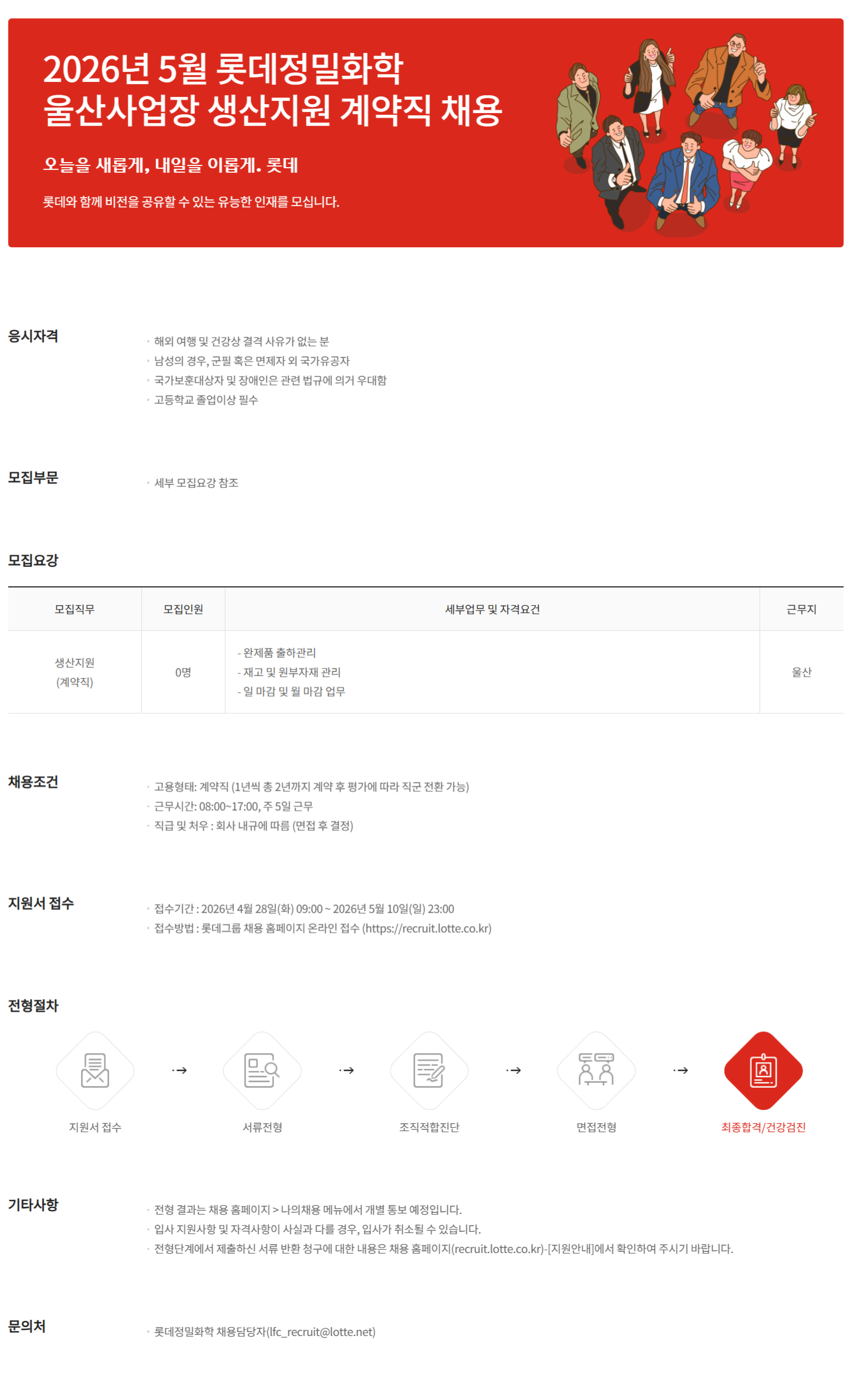 2026³â 5¿ù ·Ôµ¥Á¤¹ÐÈÇÐ ¿ï»ê»ç¾÷Àå »ý»êÁö¿ø °è¾àÁ÷ ä¿ë