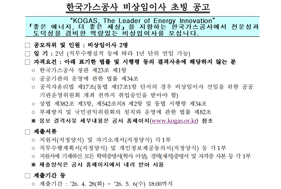 ¡Û ÀÚ¼¼ÇÑ »çÇ×Àº Çѱ¹°¡½º°ø»ç ÀÓ¿øÃßõÀ§¿øÈ¸(¢Ï***-****-****, 0257, 0662)·Î ¹®ÀÇÇϽðųª °ø»ç ȨÆäÀÌÁö(www.kogas.or.kr)¸¦ ÂüÁ¶ÇϽñ⠹ٶø´Ï´Ù.
