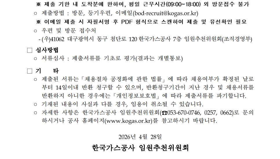 ¡Û Á¦Ãâ¹æ¹ý : ¹æ¹®, µî±â¿ìÆí, À̸ÞÀÏ(bod-recruit@kogas.or.kr******@*******.***)