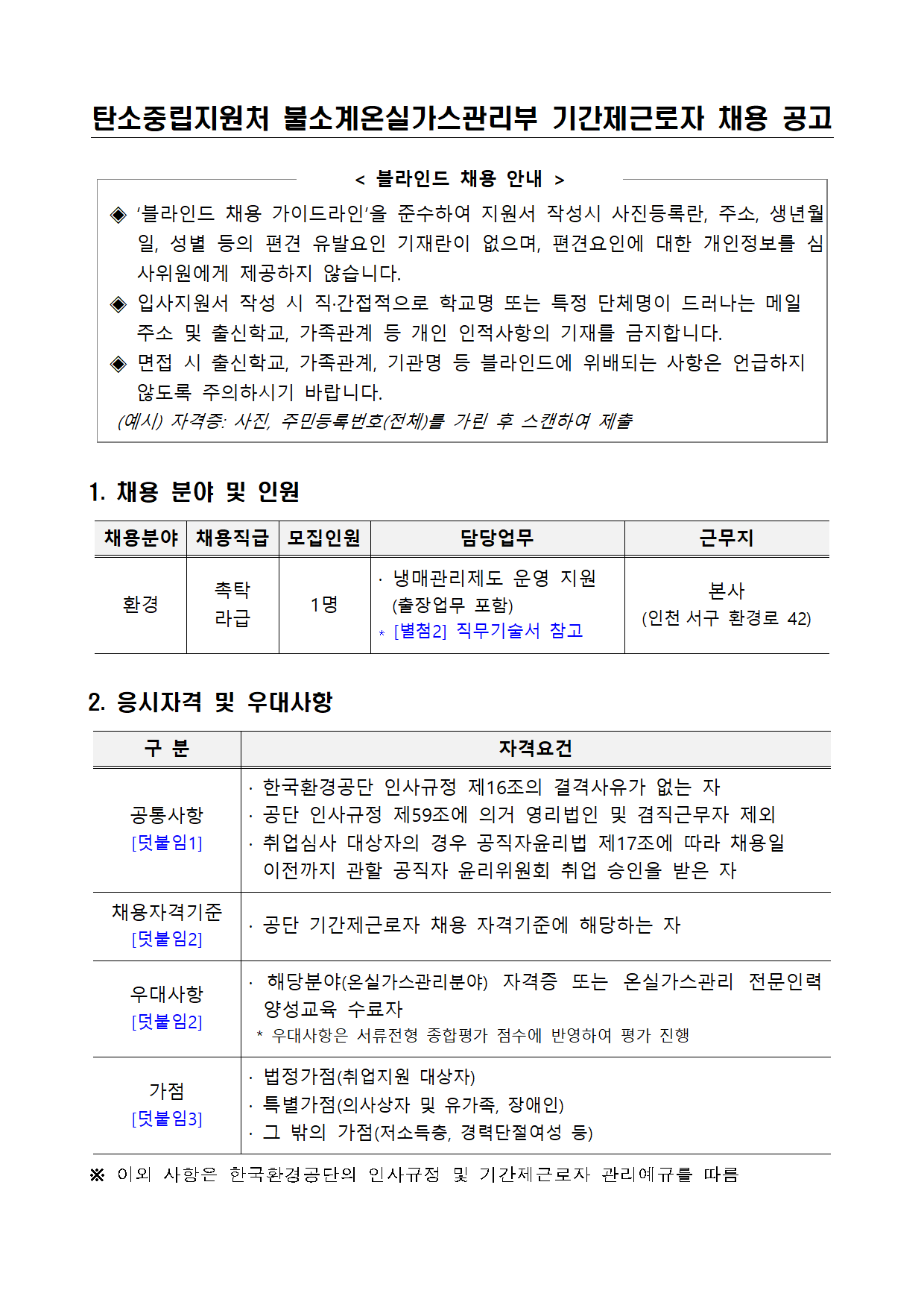 Çѱ¹È¯°æ°ø´Ü ź¼ÒÁ߸³Áö¿øÃ³ ºÒ¼Ò°è¿Â½Ç°¡½º°ü¸®ºÎ ±â°£Á¦±Ù·ÎÀÚ(ÃËŹ ¶ó±Þ) ä¿ë(2Â÷) °ø°í