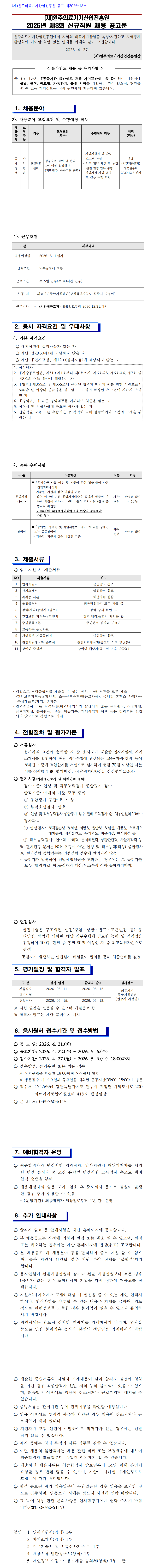 (Àç)¿øÁÖÀÇ·á±â±â»ê¾÷ÁøÈï¿ø 2026³â Á¦3ȸ ½Å±ÔÁ÷¿ø ä¿ë °ø°í(Á¤ºÎ»ç¾÷°ü¸®)