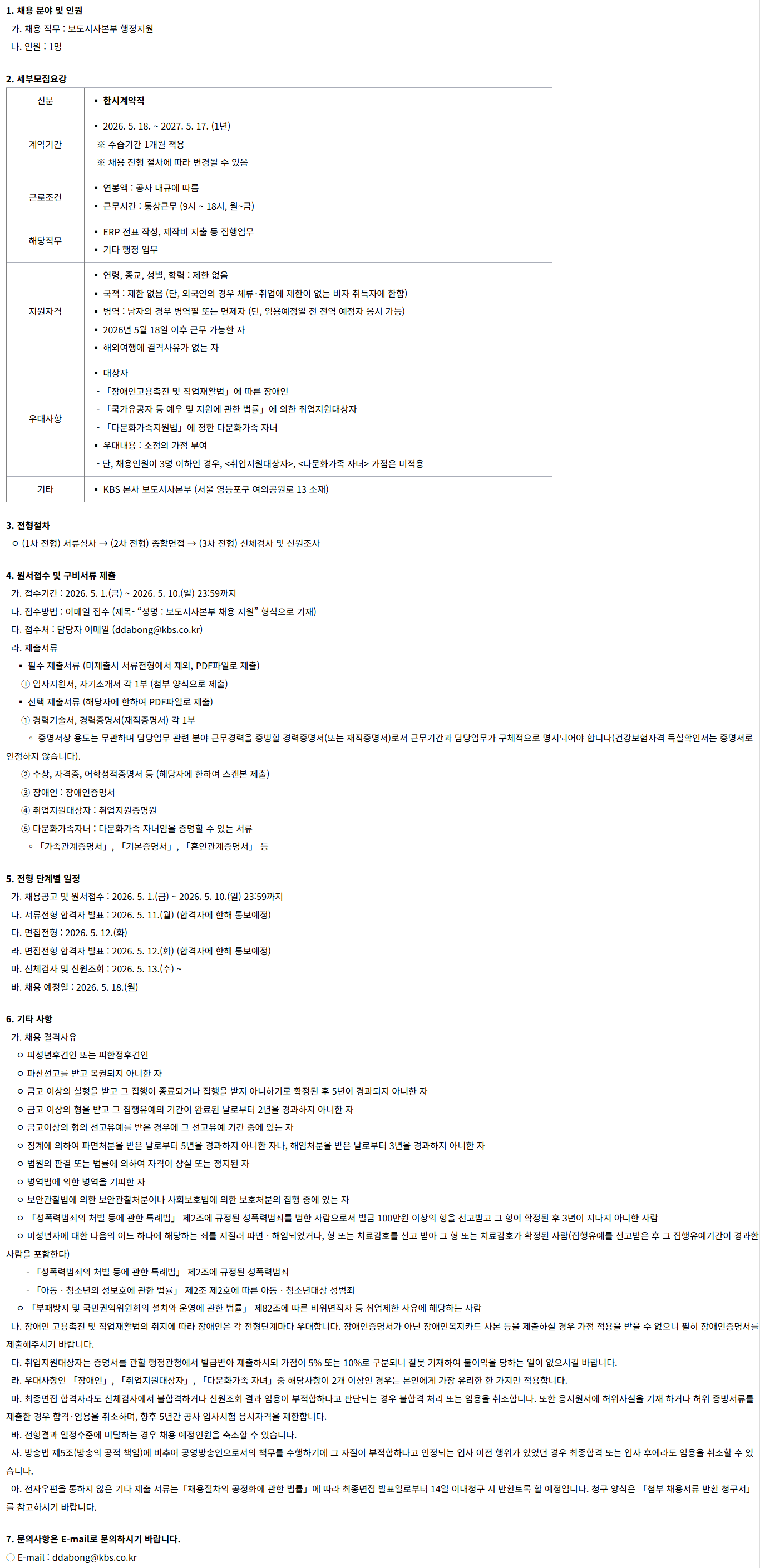 °¡. ä¿ë°ø°í ¹× ¿ø¼Á¢¼ö : 2026. 5. 1.(±Ý) ~ 2026. 5. 10.(ÀÏ) 23:59±îÁö