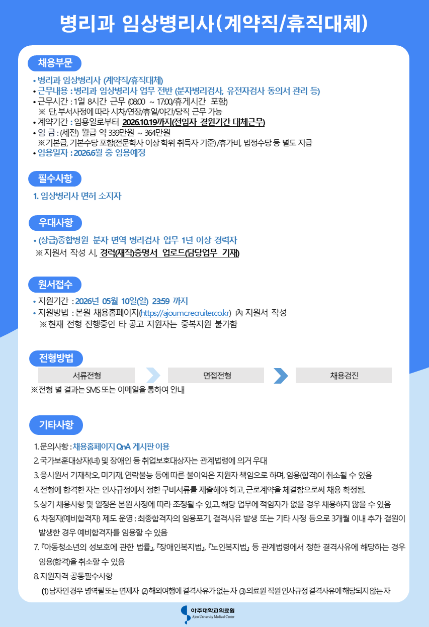 º´¸®°ú ÀÓ»óº´¸®»ç(°è¾àÁ÷/ÈÞÁ÷´ëü)