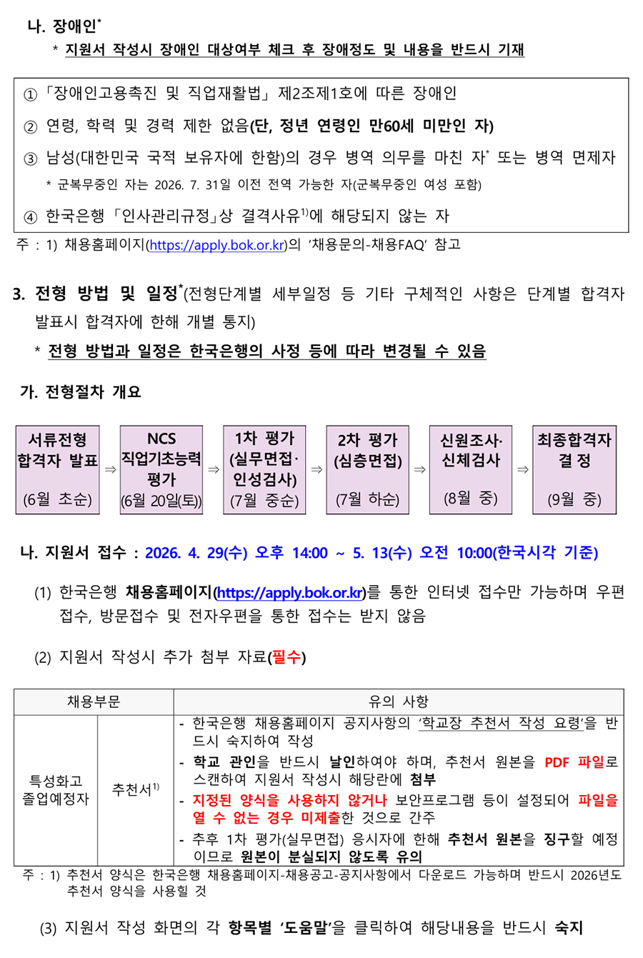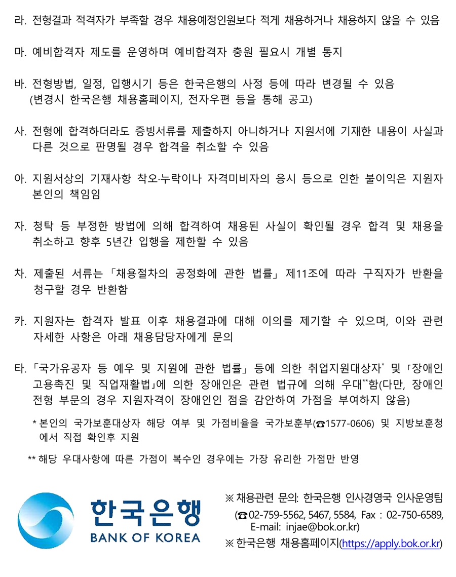 ÁÖ : 1) ä¿ëȨÆäÀÌÁö(https://apply.bok.or.kr)ÀÇ 'ä¿ë¹®ÀÇ-ä¿ëFAQ' Âü°í