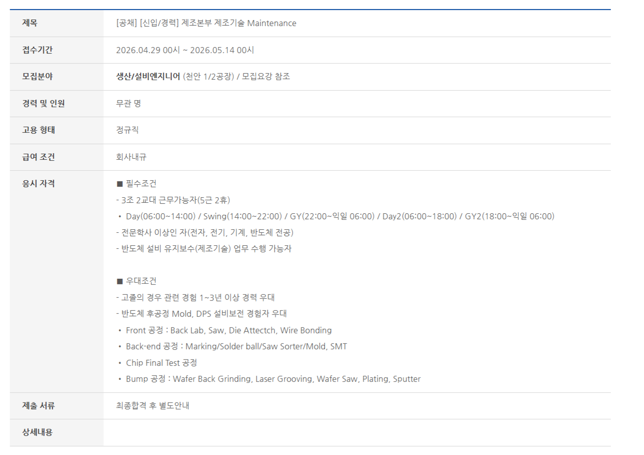 [°øÃ¤] [½ÅÀÔ/°æ·Â] Á¦Á¶º»ºÎ Á¦Á¶±â¼ú Maintenance
