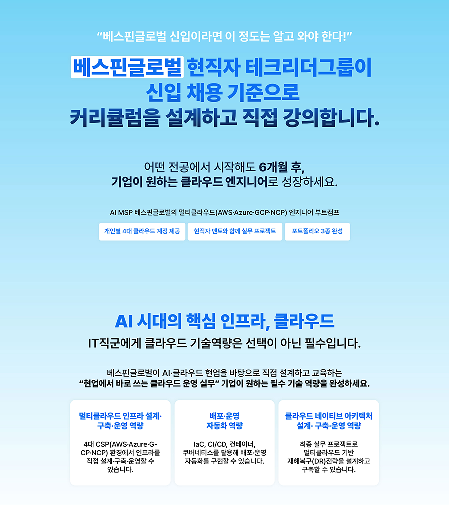 º£½ºÇɱ۷ιú ÇöÁ÷ÀÚ°¡ Á÷Á¢ °¡¸£Ä¡°í ¸àÅ丵 ±³À°±â°£ Áß AWS, Azure, GCP, NCP Ŭ¶ó¿ìµå