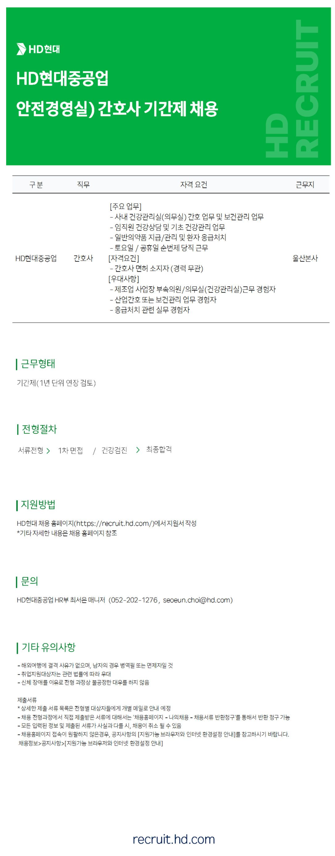 [HDÇö´ëÁß°ø¾÷] ¾ÈÀü°æ¿µ½Ç °£È£»ç ±â°£Á¦ ä¿ë